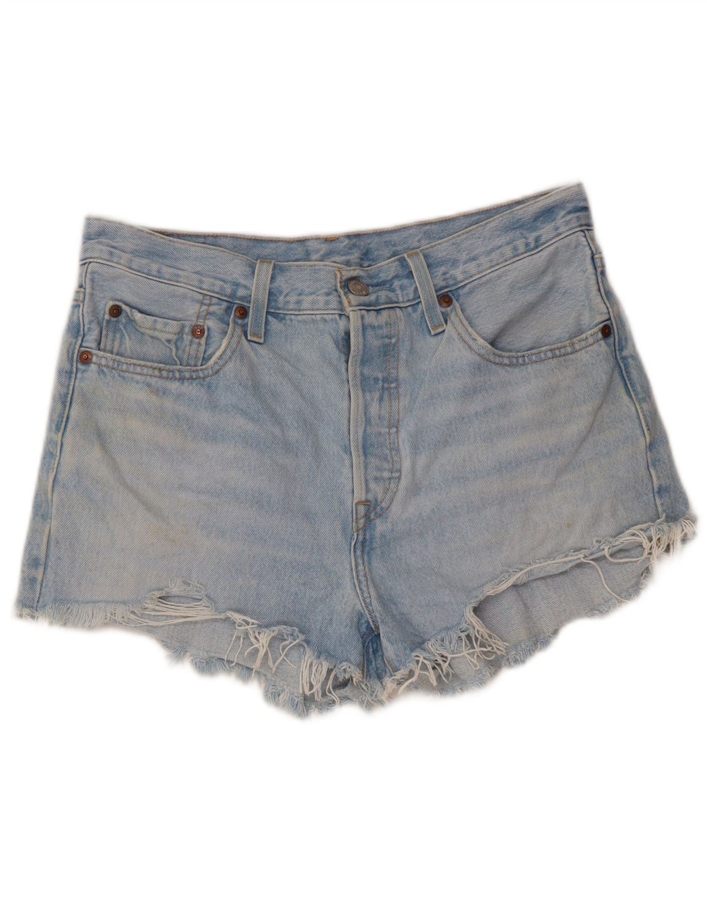 Shorts jeans feminino Levi's 501 desgastado W28 algodão azul médio