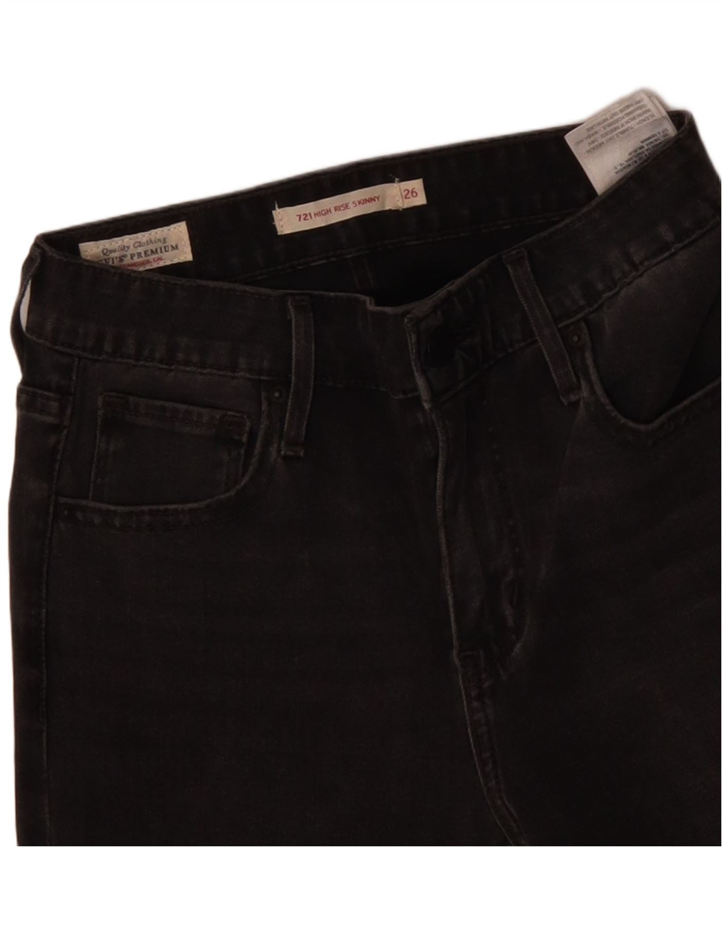 Calça jeans feminina LEVI'S 721 cintura alta skinny W26 L30 algodão cinza