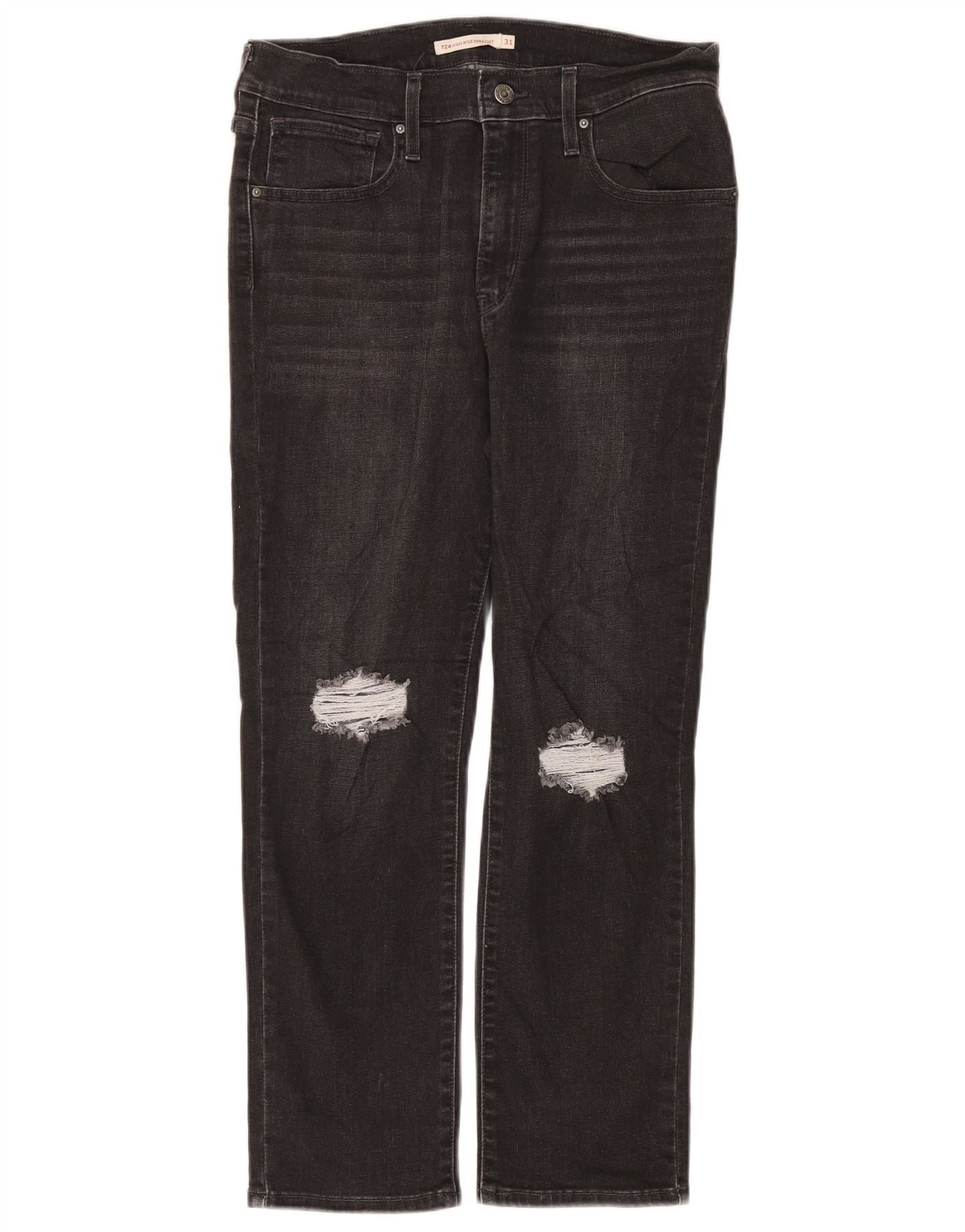 Calça jeans feminina LEVI'S 724 desgastada com cintura alta reta W31 L26 algodão cinza