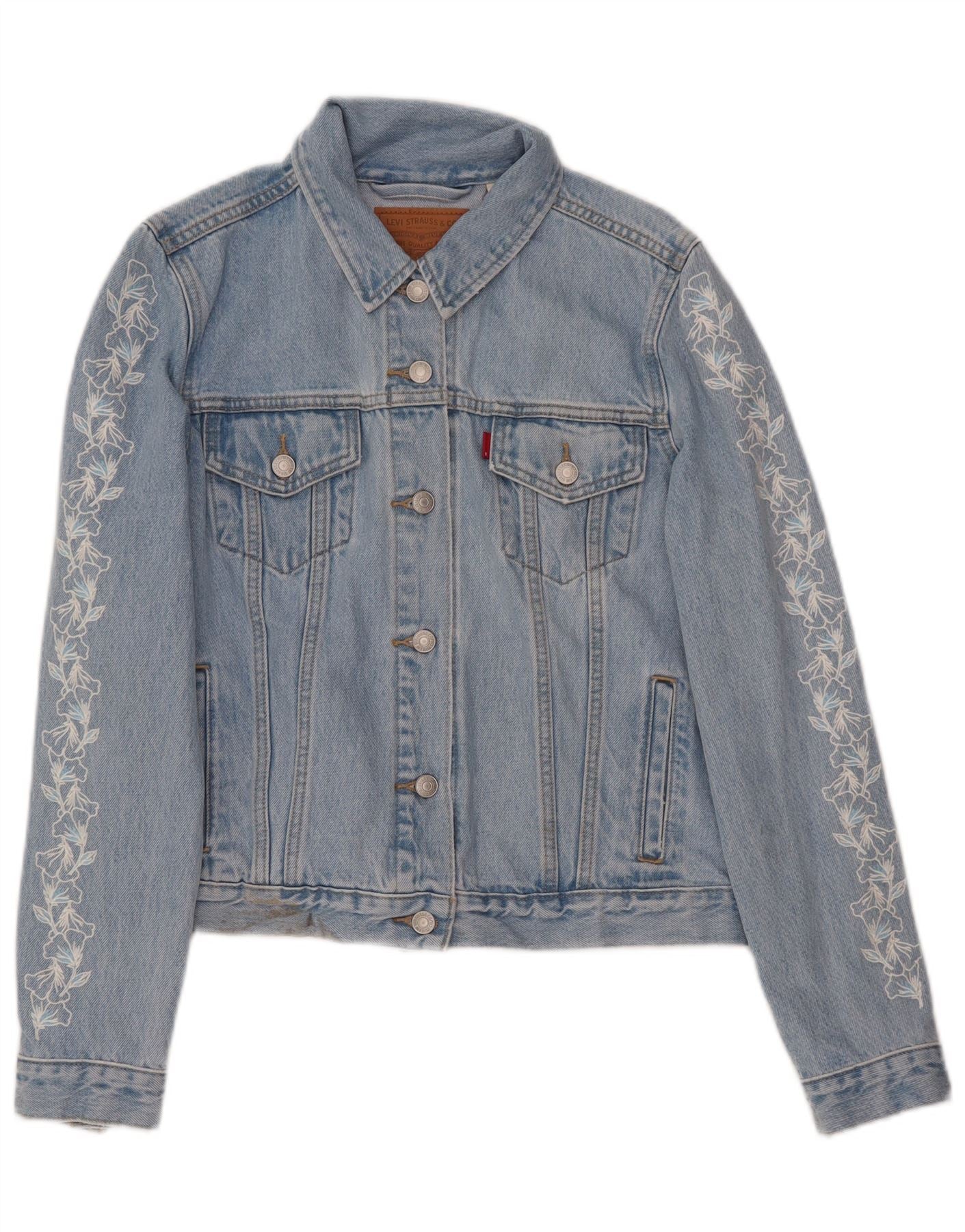 Jaqueta jeans feminina Levi's UK 16 grande algodão floral azul