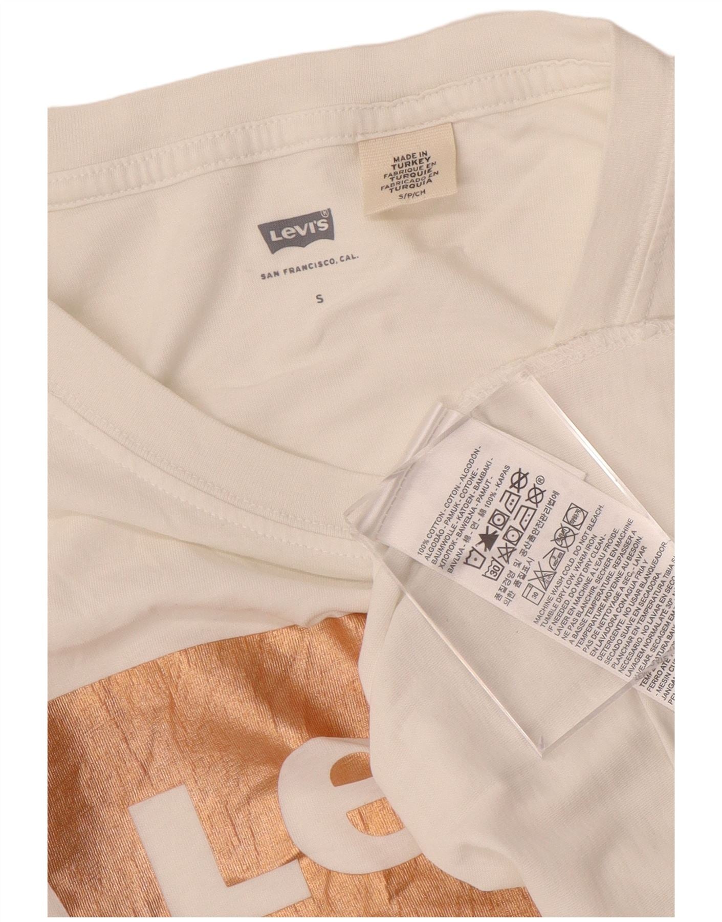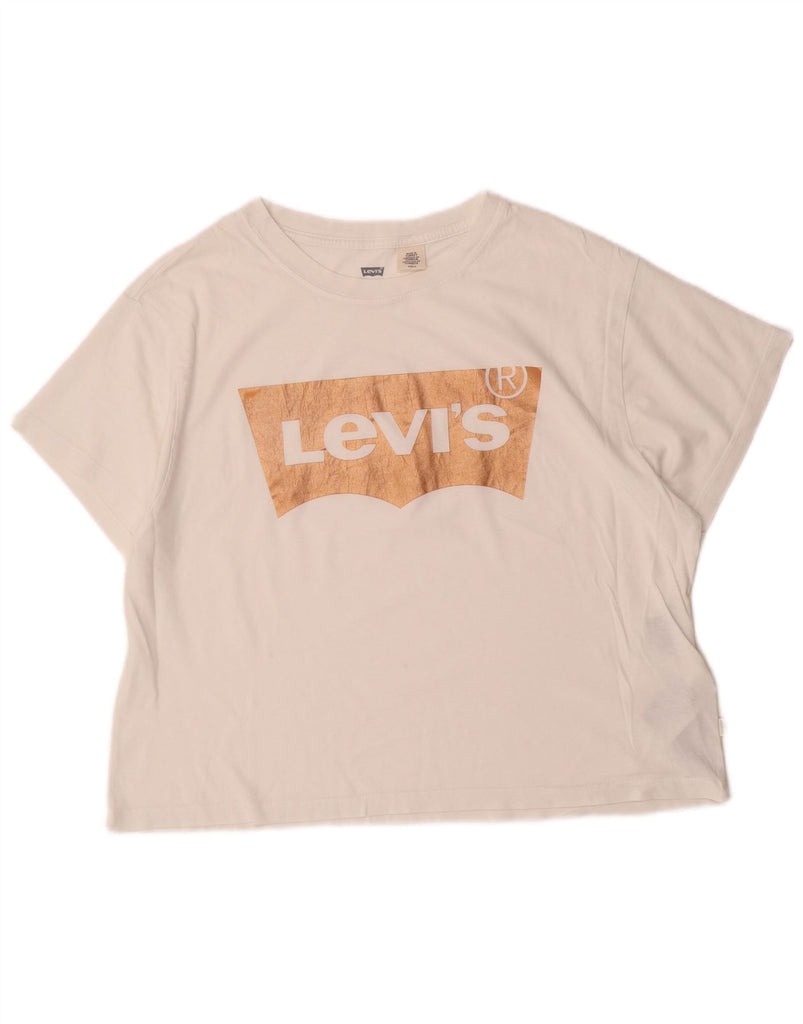 LEVI'S Womens Crop Oversized Graphic T-Shirt Top UK 10 Small White Cotton