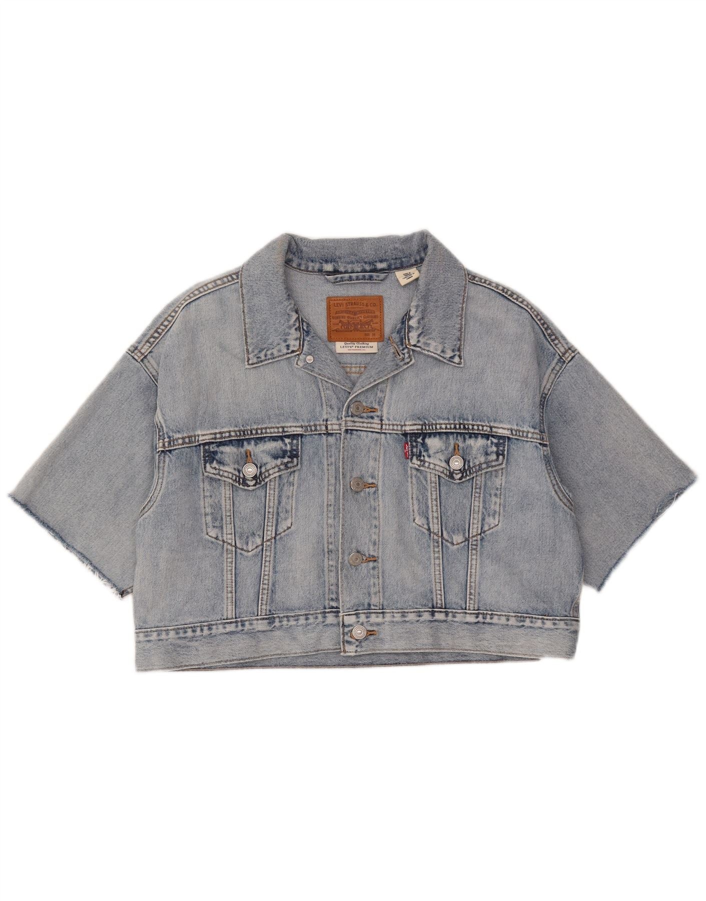 LEVI'S Womens Crop Short Sleeve Denim Jacket UK 14 Medium Blue Cotton