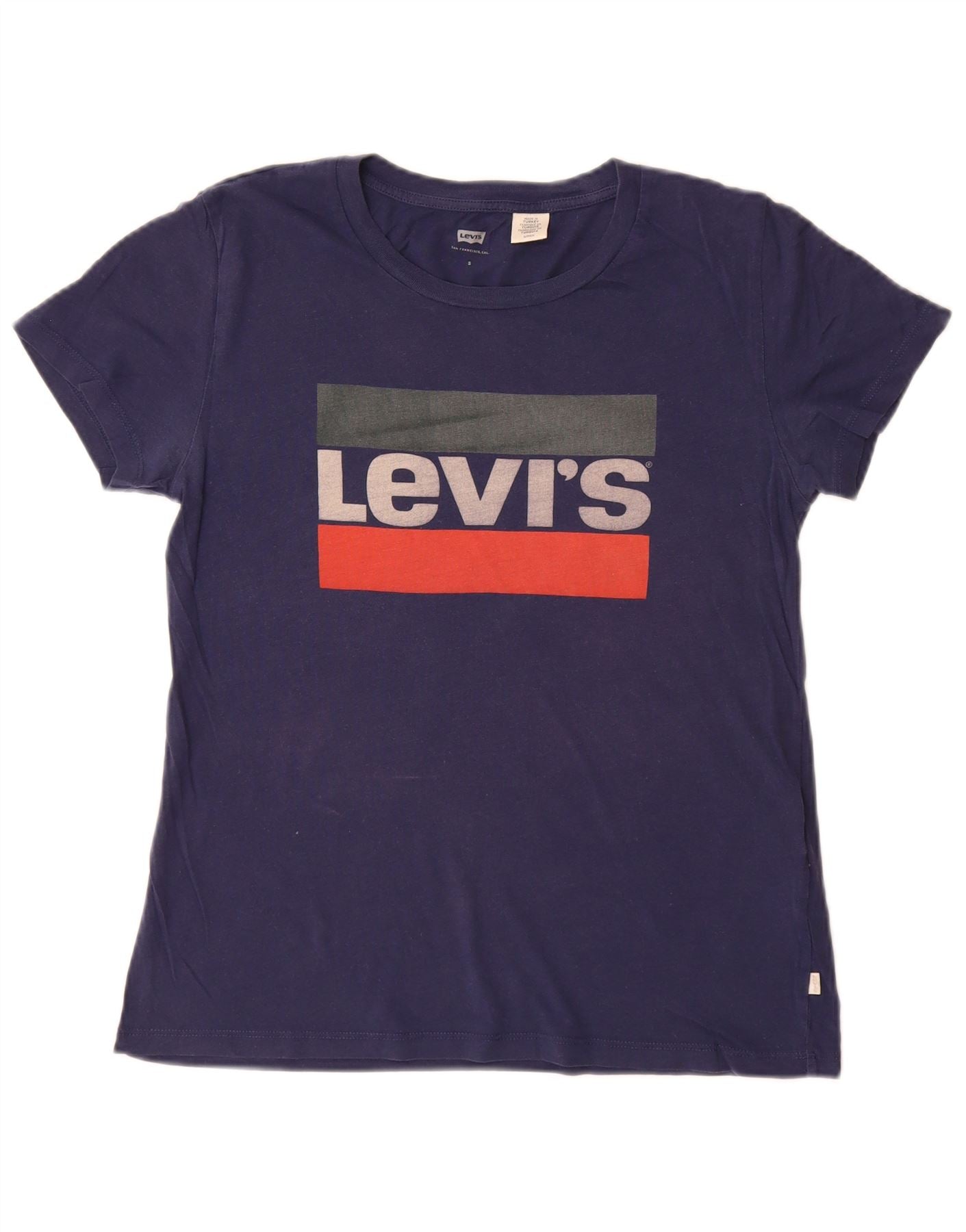 Camiseta feminina gráfica LEVI'S UK 10 pequena algodão azul marinho