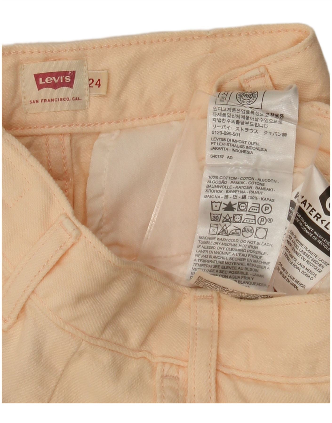 Calça cargo feminina de cintura alta cônica LEVI'S W24 L28 algodão rosa