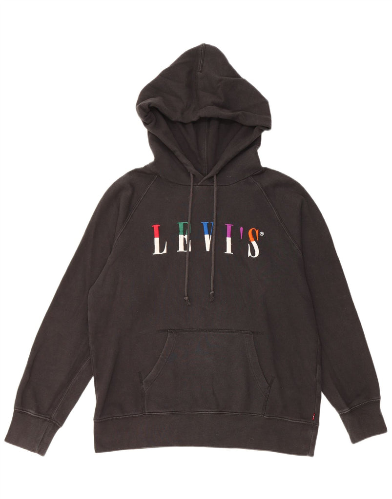 Suéter feminino com capuz gráfico oversized LEVI'S Reino Unido 14 algodão preto médio