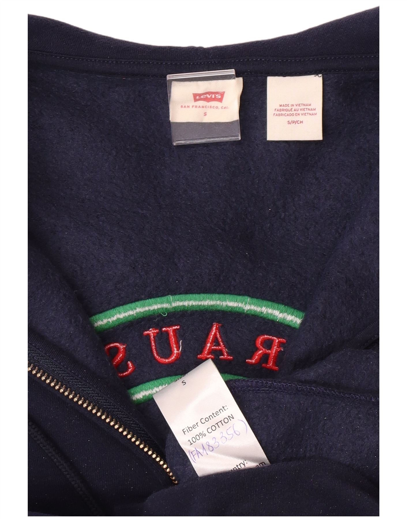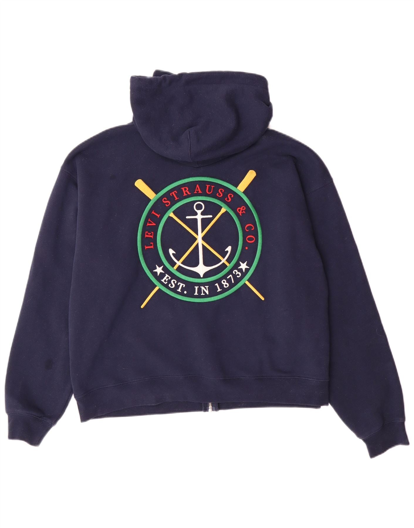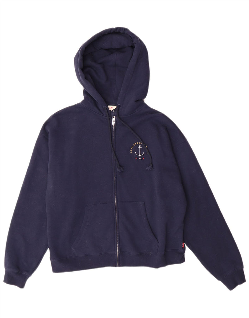 Suéter feminino com capuz e zíper gráfico grande da LEVI'S Reino Unido 10 pequeno azul marinho