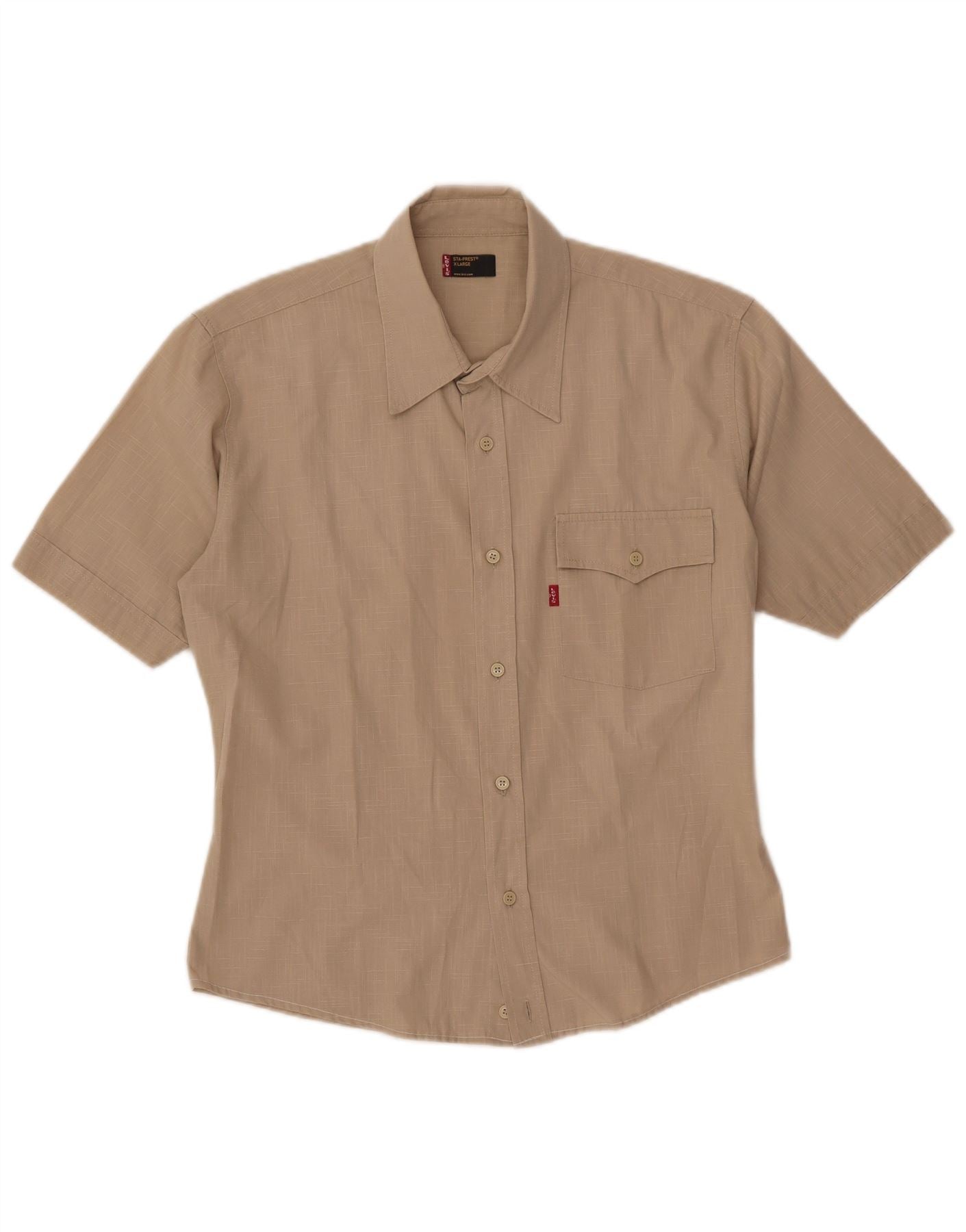 Camisa feminina Levi's Sta-Prest de manga curta UK 18 XL bege xadrez