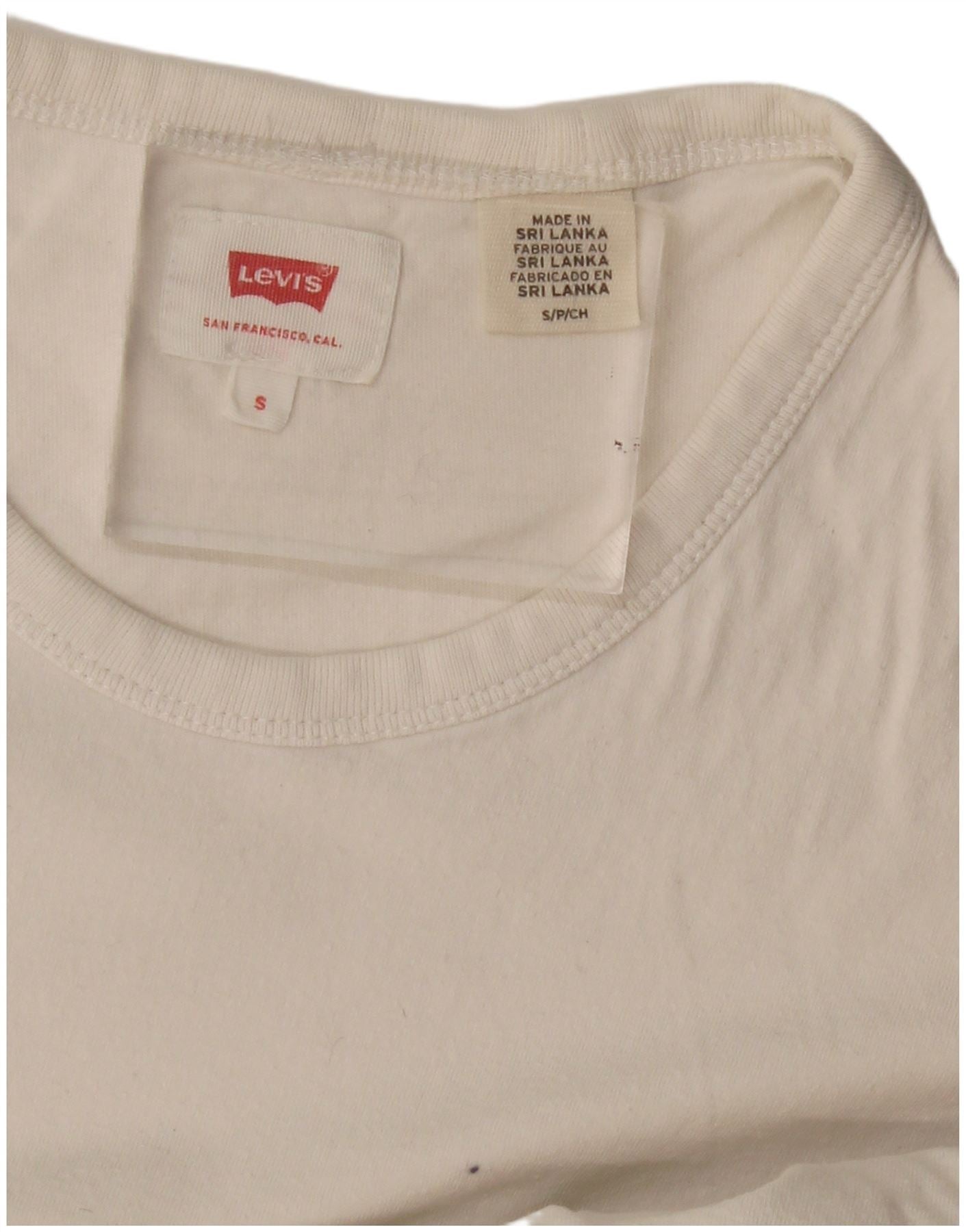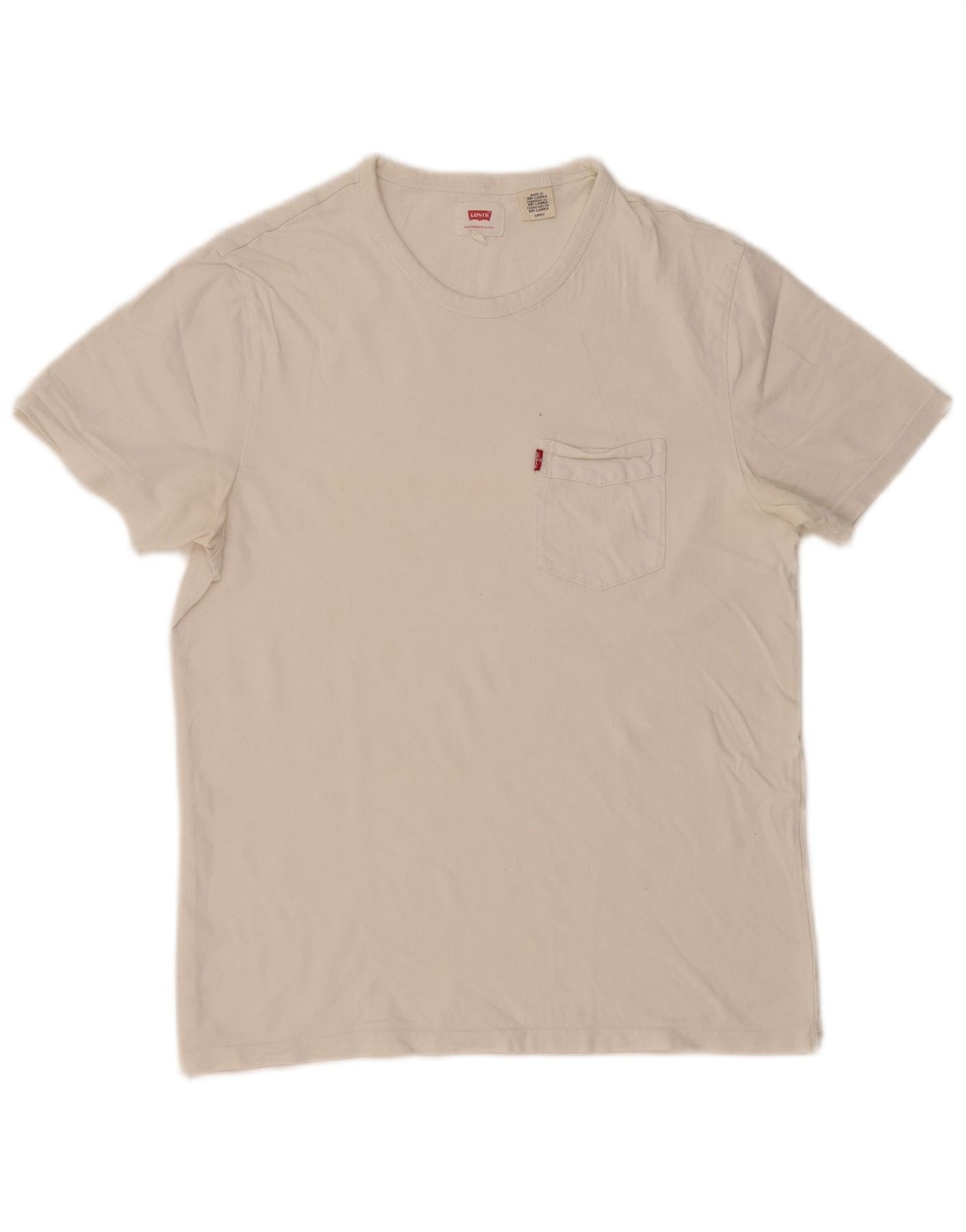- Descrição da IA: Esta camiseta feminina Levi's é confeccionada em tecido jersey off white macio. Possui gola redonda clássica e mangas curtas. O ajuste regular garante um uso confortável. Um único bolso no peito acrescenta detalhes práticos. A icônica aba do logotipo da Levi's é colocada sutilmente no bolso. Este estilo pulôver oferece versatilidade atemporal para roupas do dia a dia.