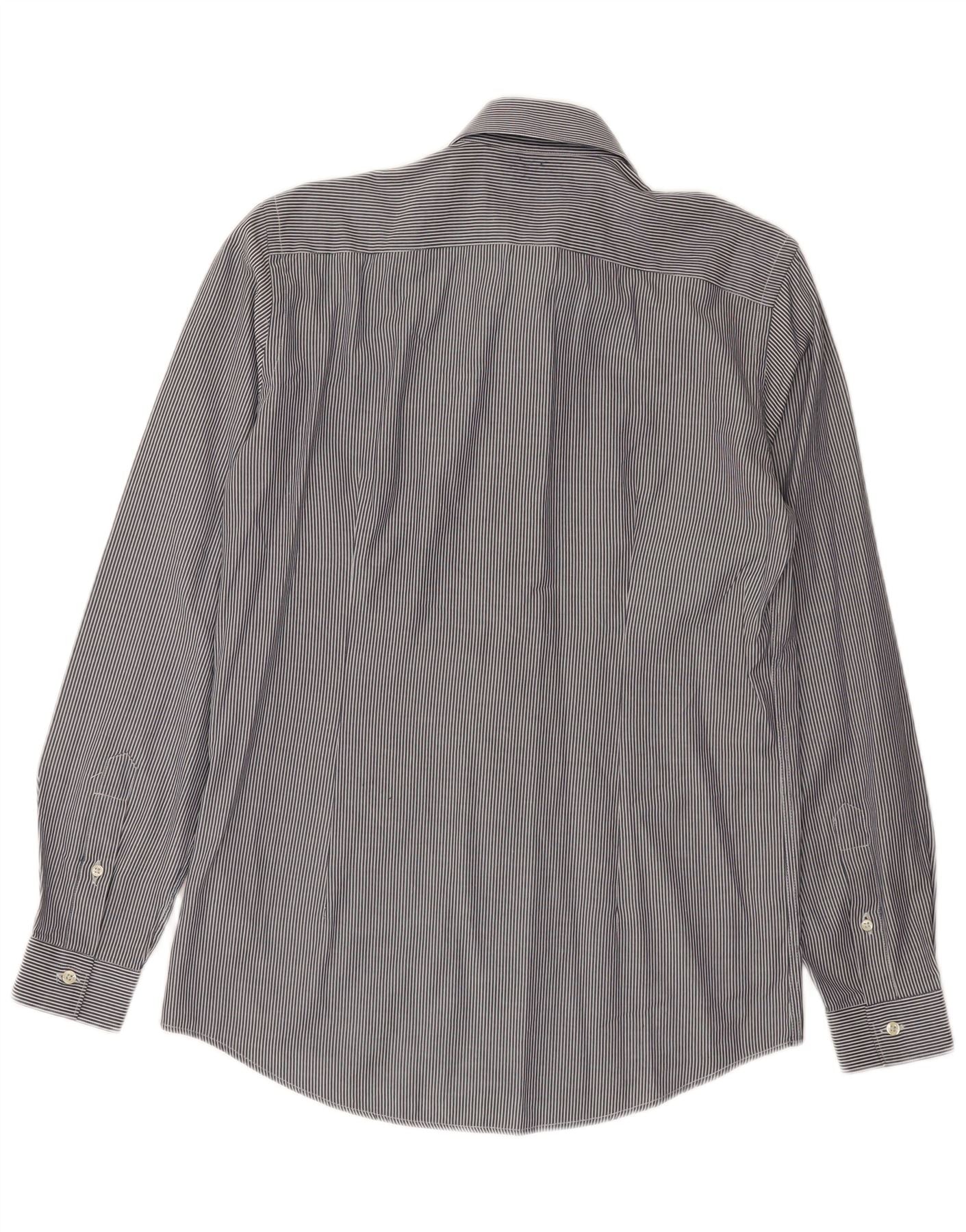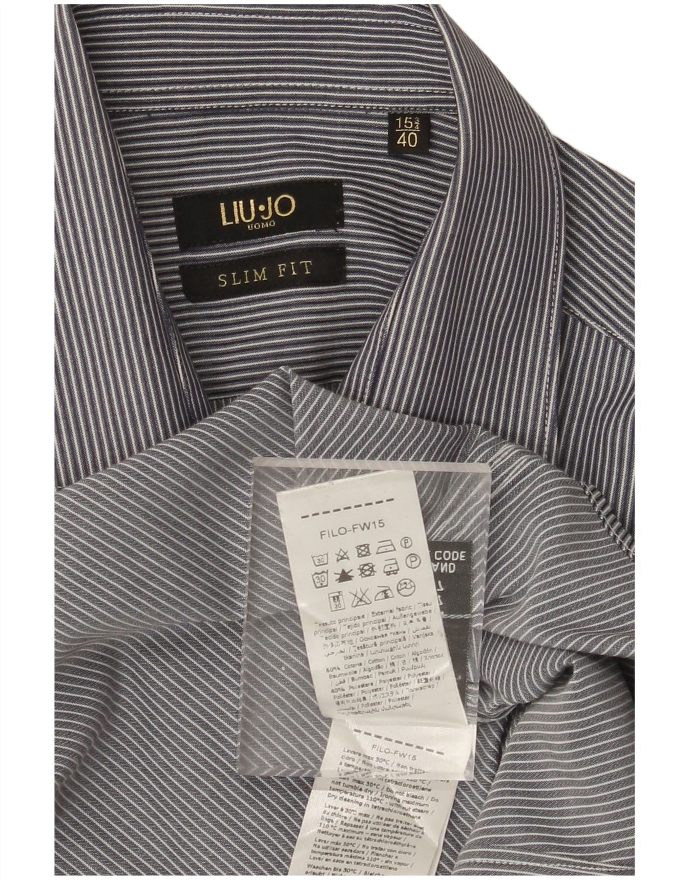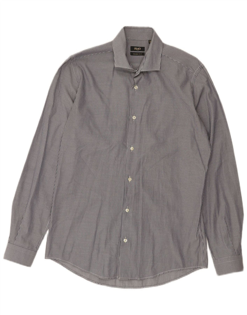 LIU JO Camisa masculina slim fit tamanho 15 3/4 40 risca de giz azul marinho médio