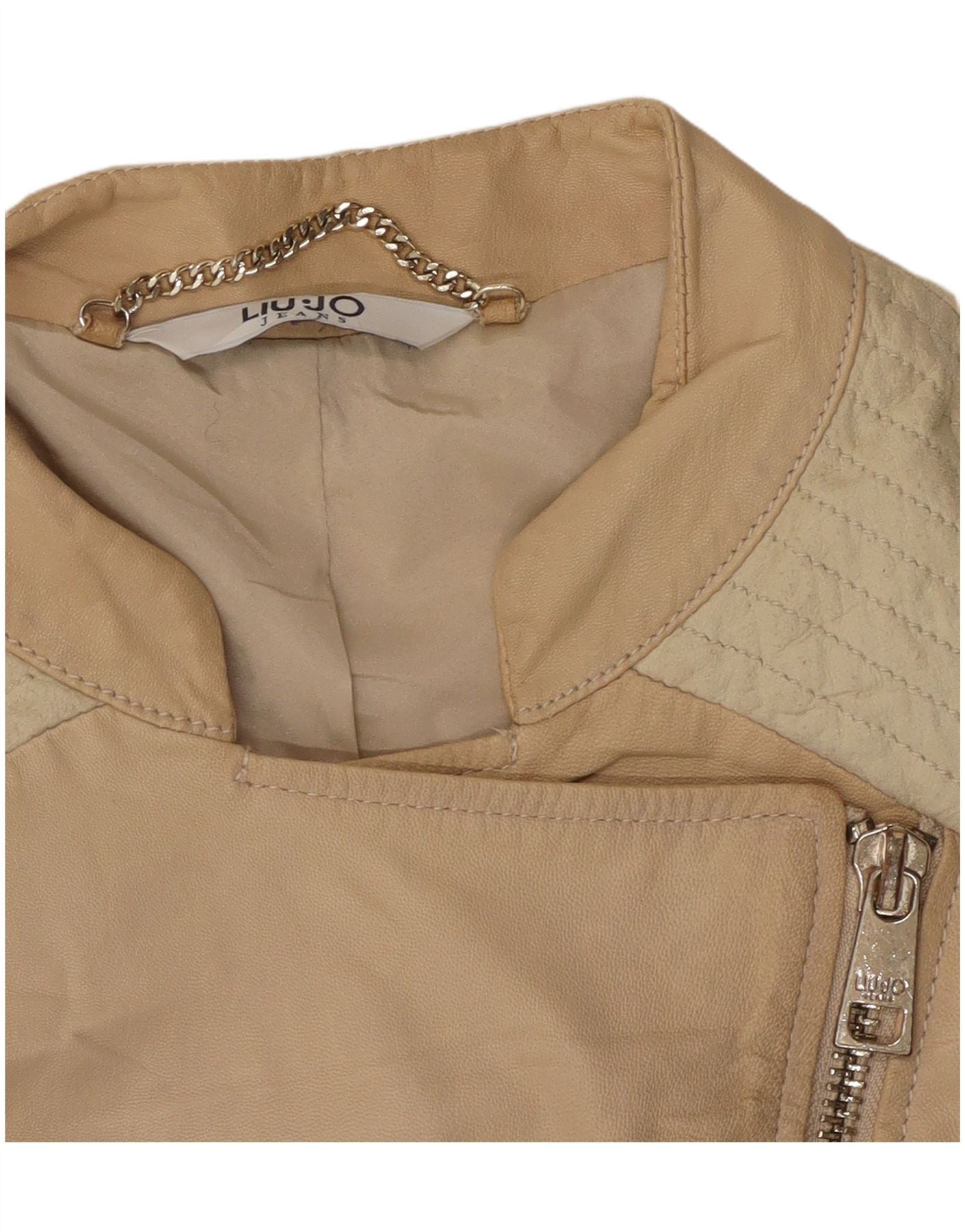 Jaqueta feminina Liu Jo Crop Biker IT 42 couro colorblock bege médio
