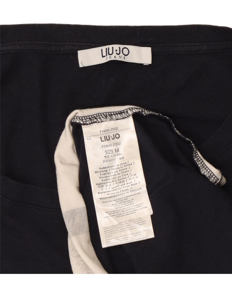 LIU JO Womens Graphic T-Shirt Top UK 14 Medium Navy Blue Geometric Cotton