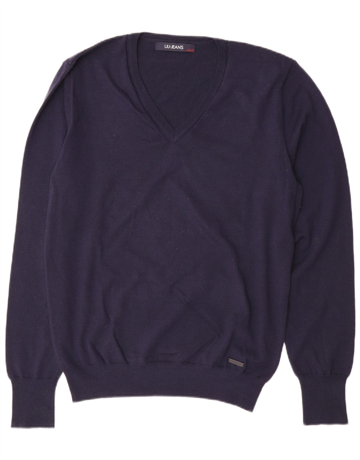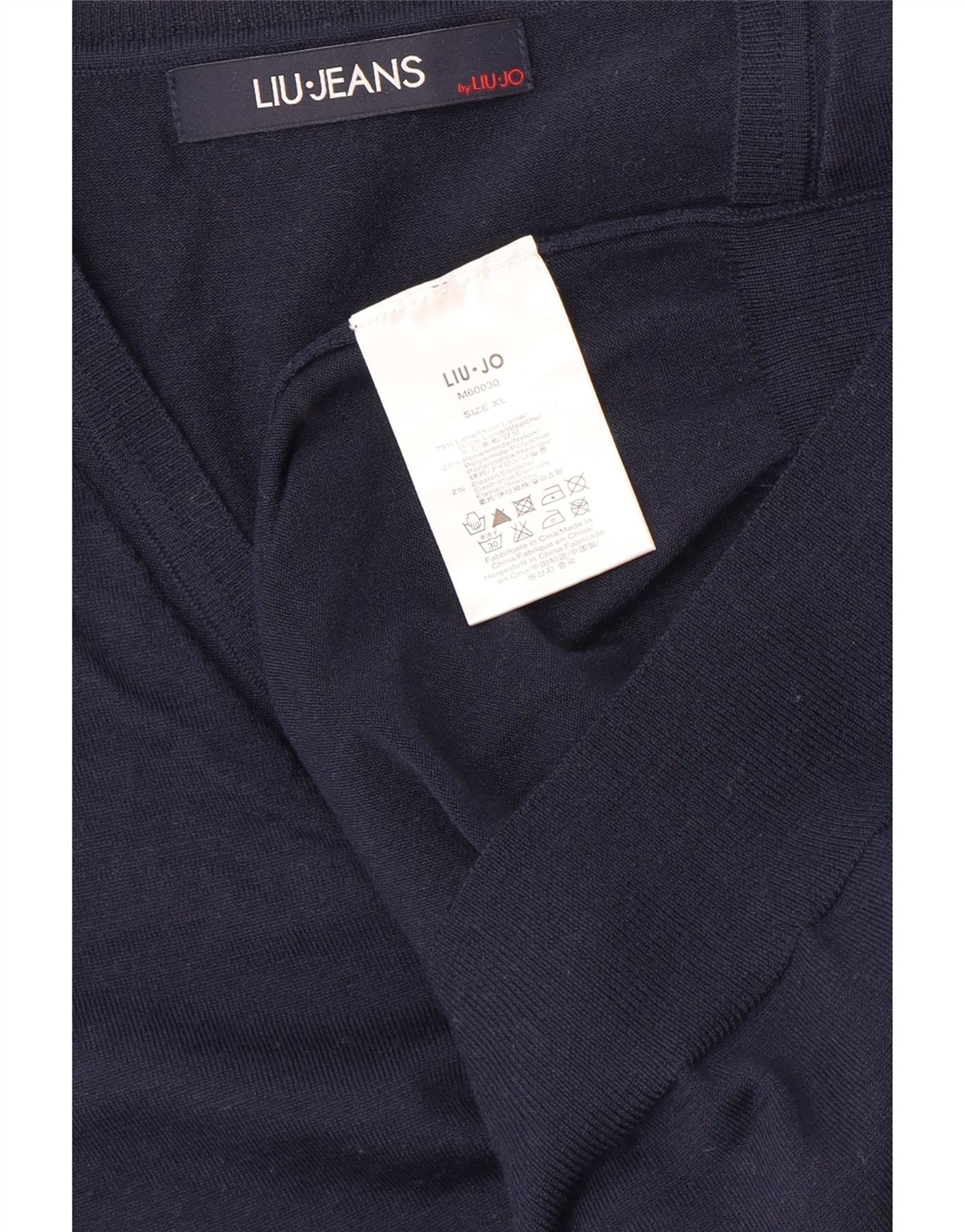 Home > mulheres > Roupas Depop > LIU JO Suéter feminino com decote em V Reino Unido 18 XL lã azul marinho