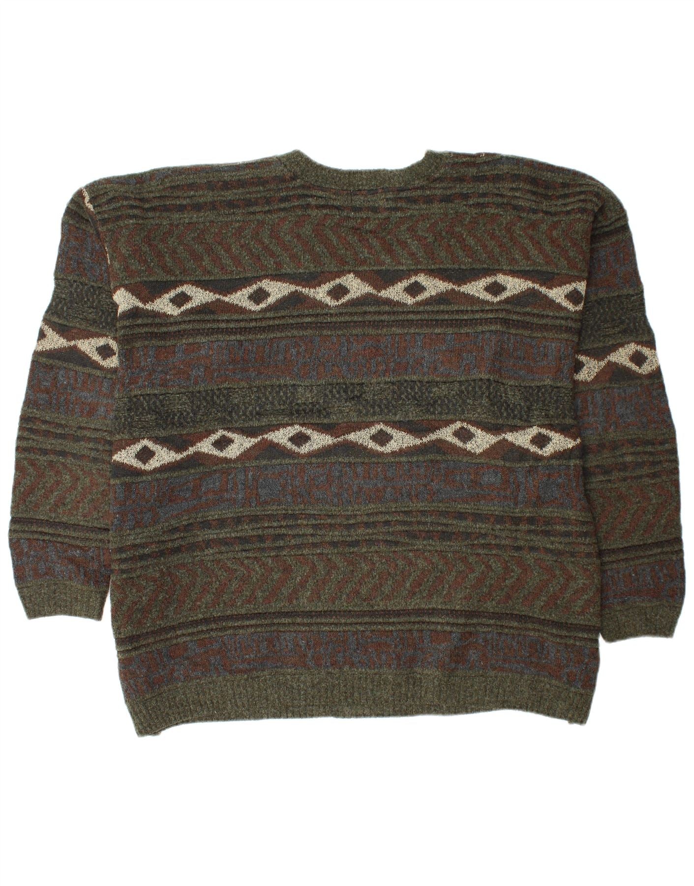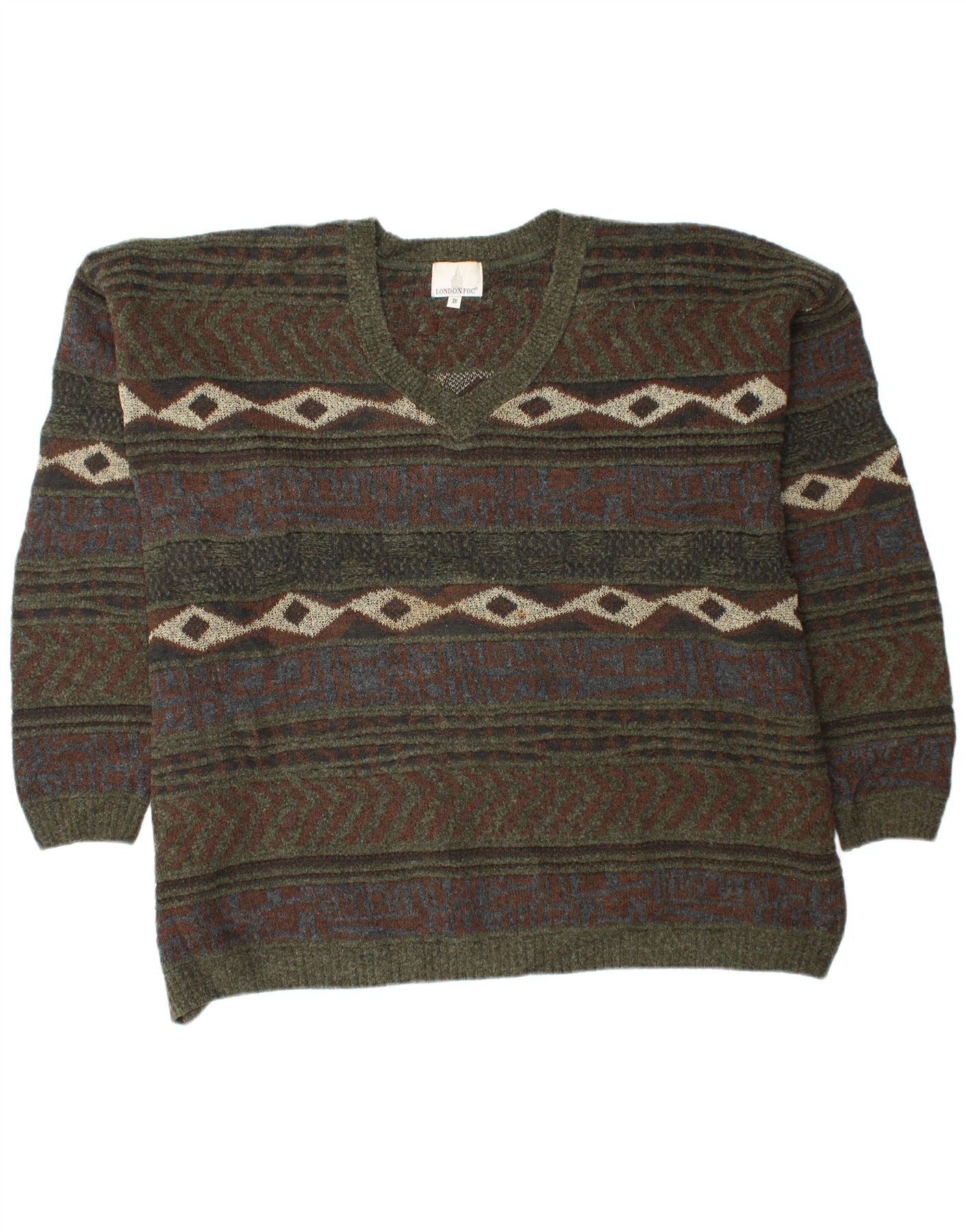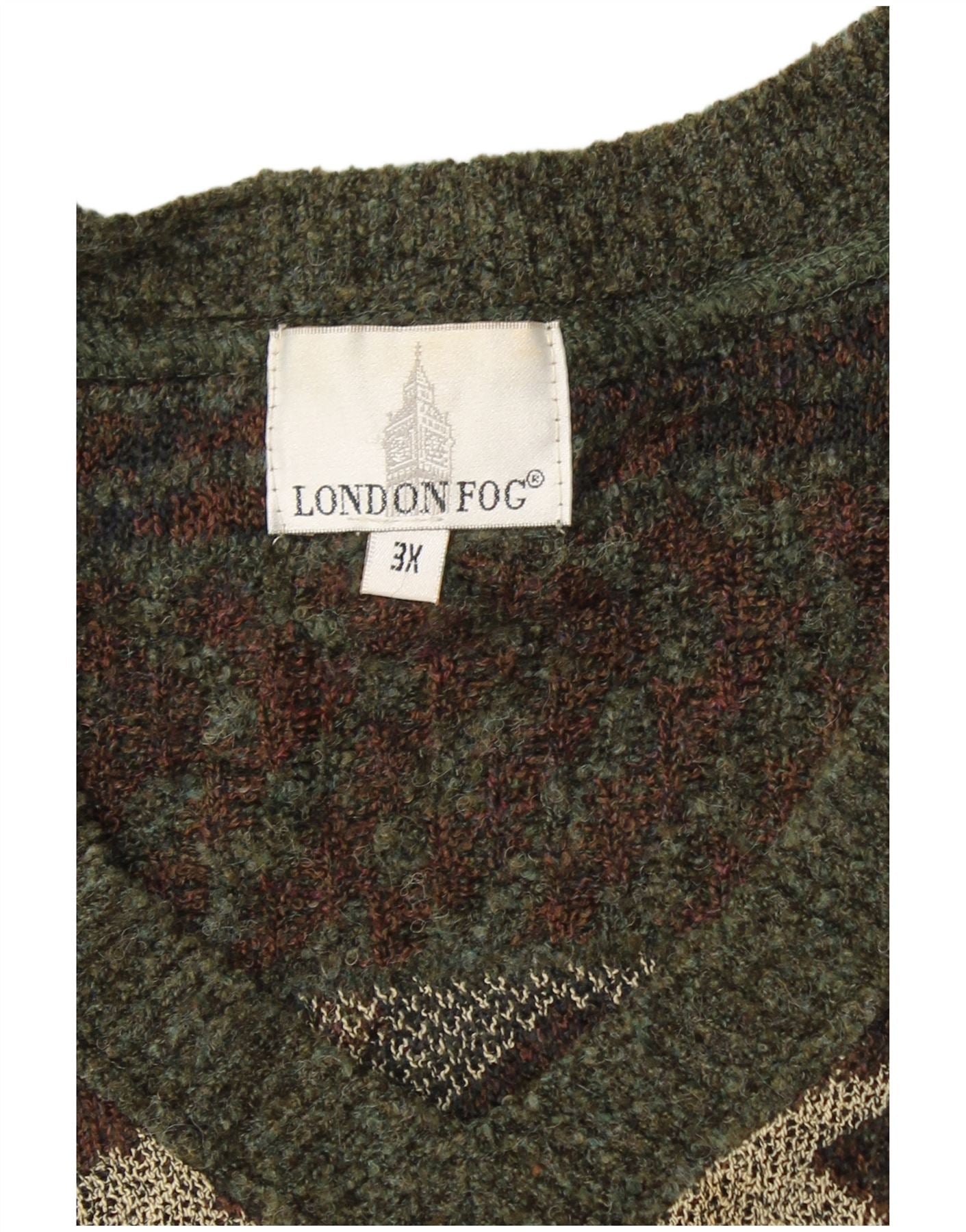 LONDON FOG Mens V-Neck Jumper Sweater 3XL Khaki Fair Isle