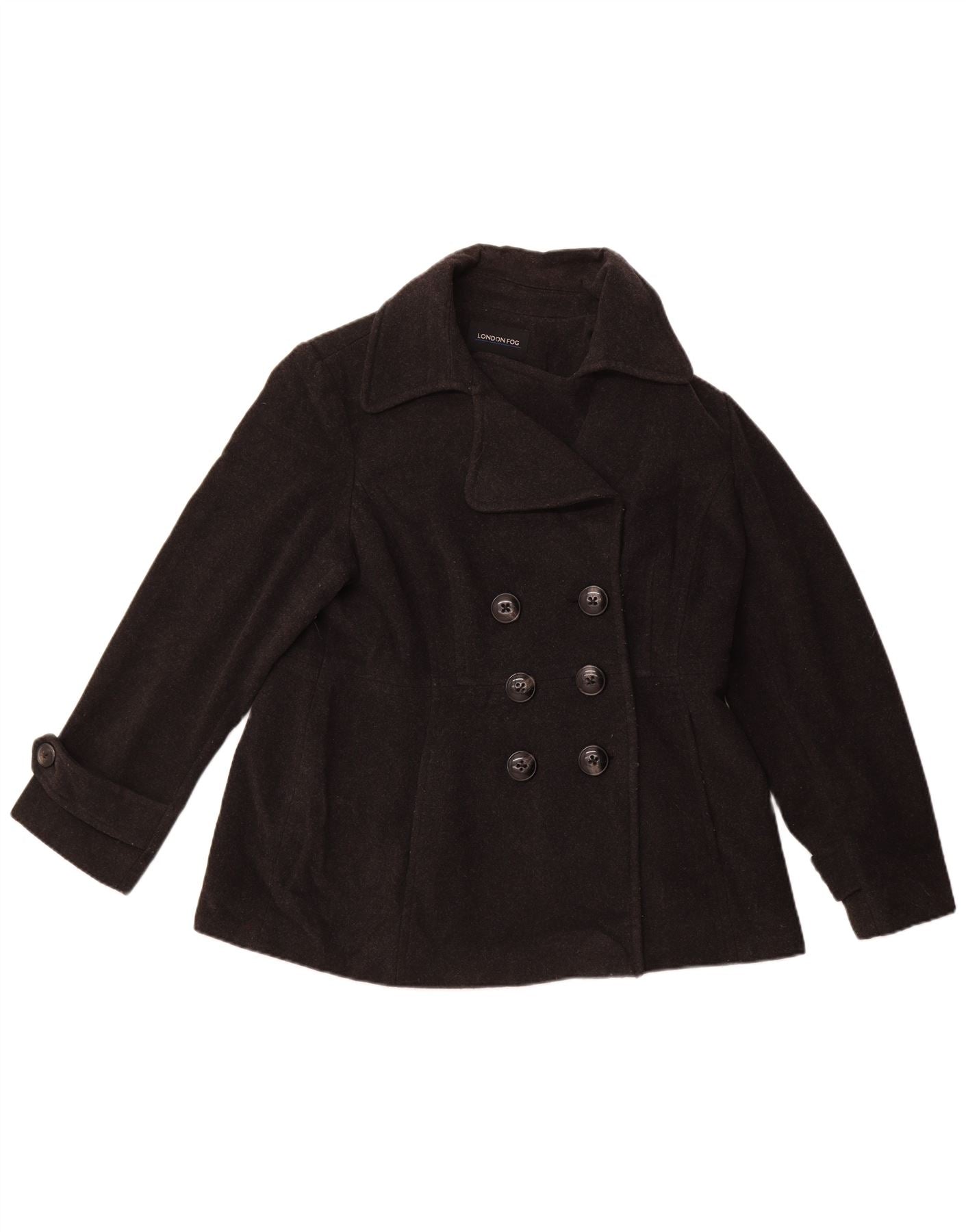 LONDON FOG Casaco feminino ervilha Reino Unido 18 XL lã preta