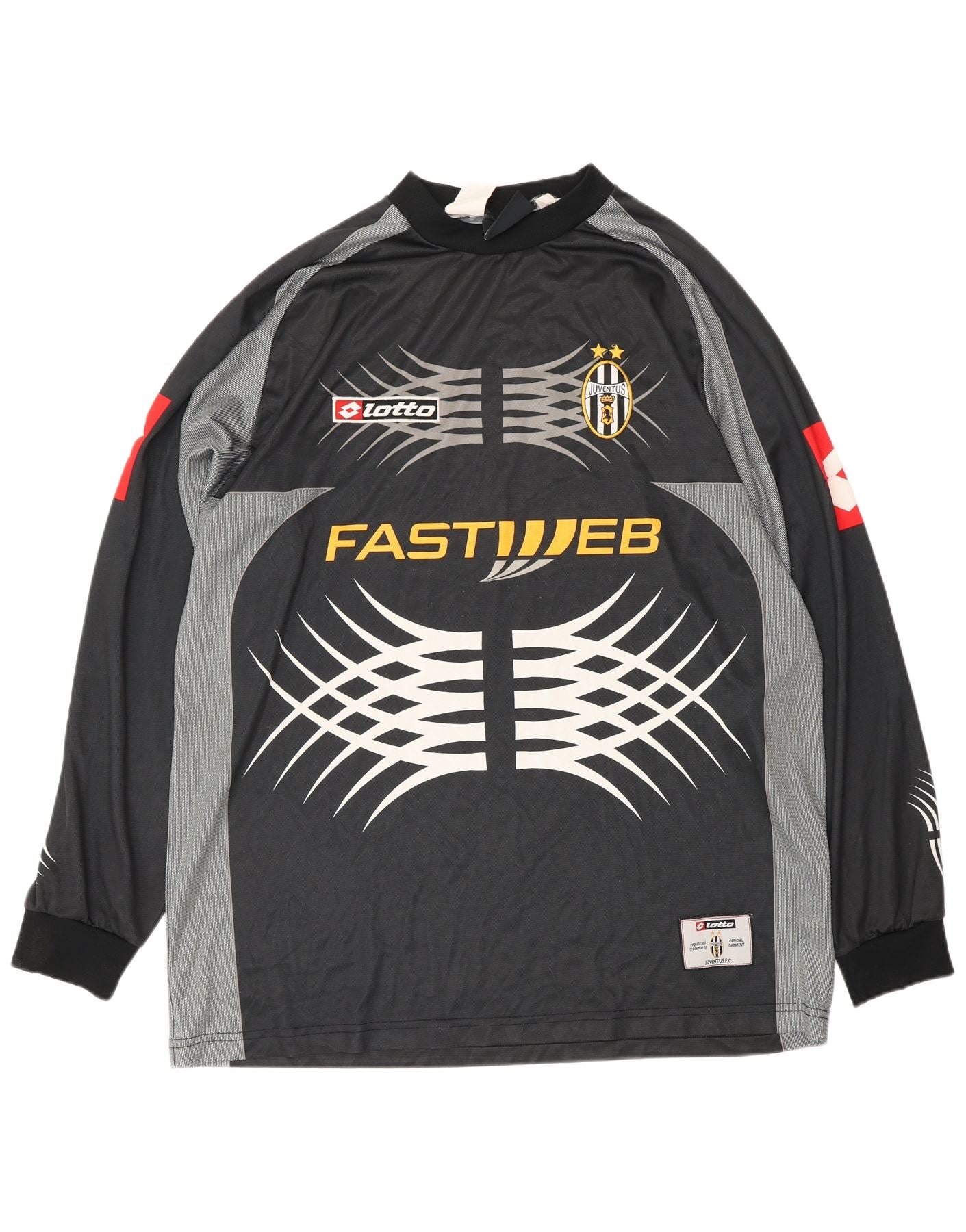 LOTTO Mens Juventus 2001-2002 Home Graphic Jersey Top Grande Preto Esportivo