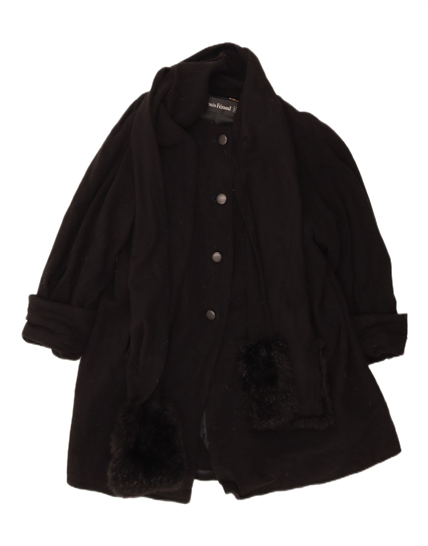 Sobretudo feminino Louis Feraud Reino Unido 14 grande lã virgem preta clássico