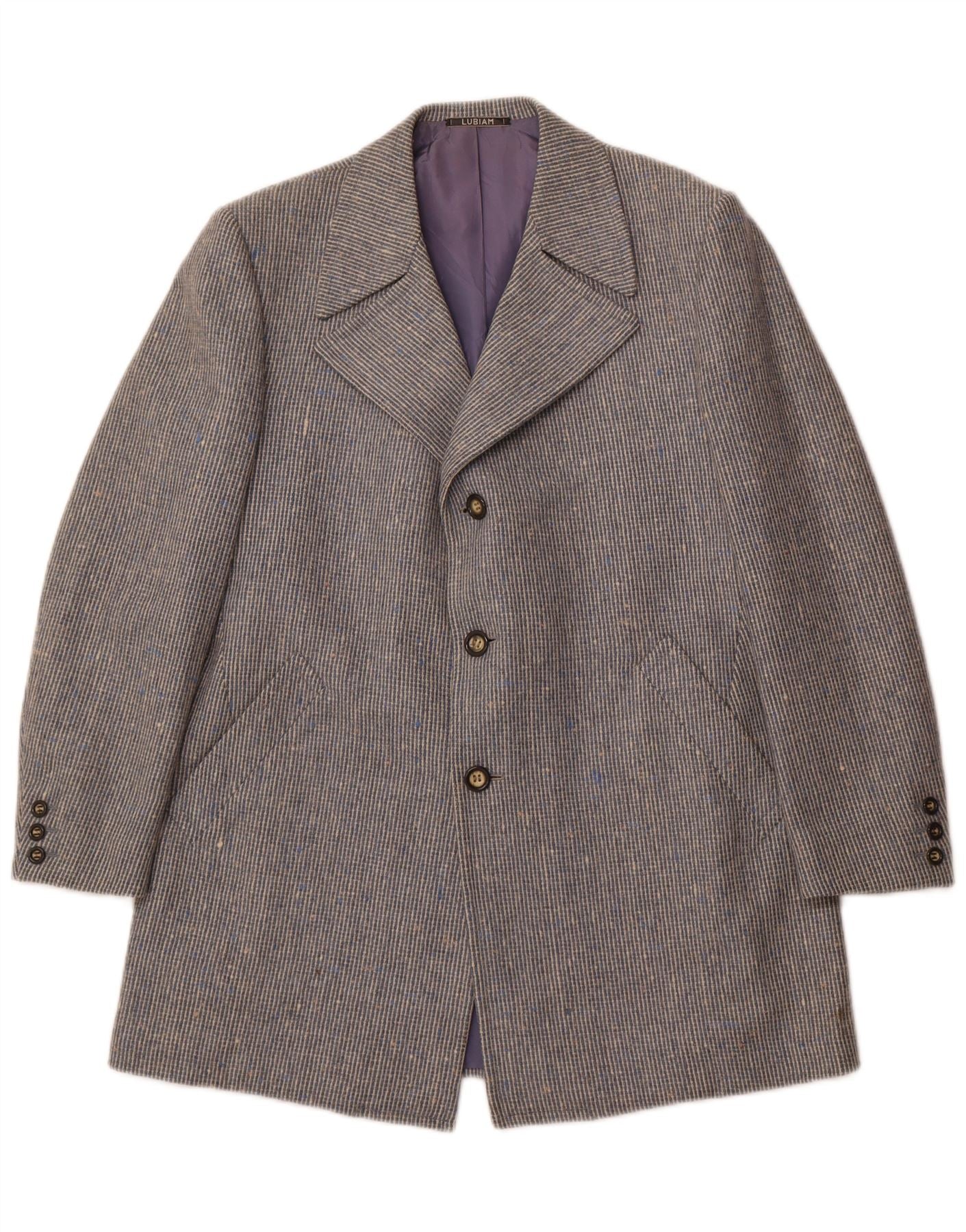 Jaqueta blazer masculina LUBIAM com 3 botões UK 38 xadrez azul médio