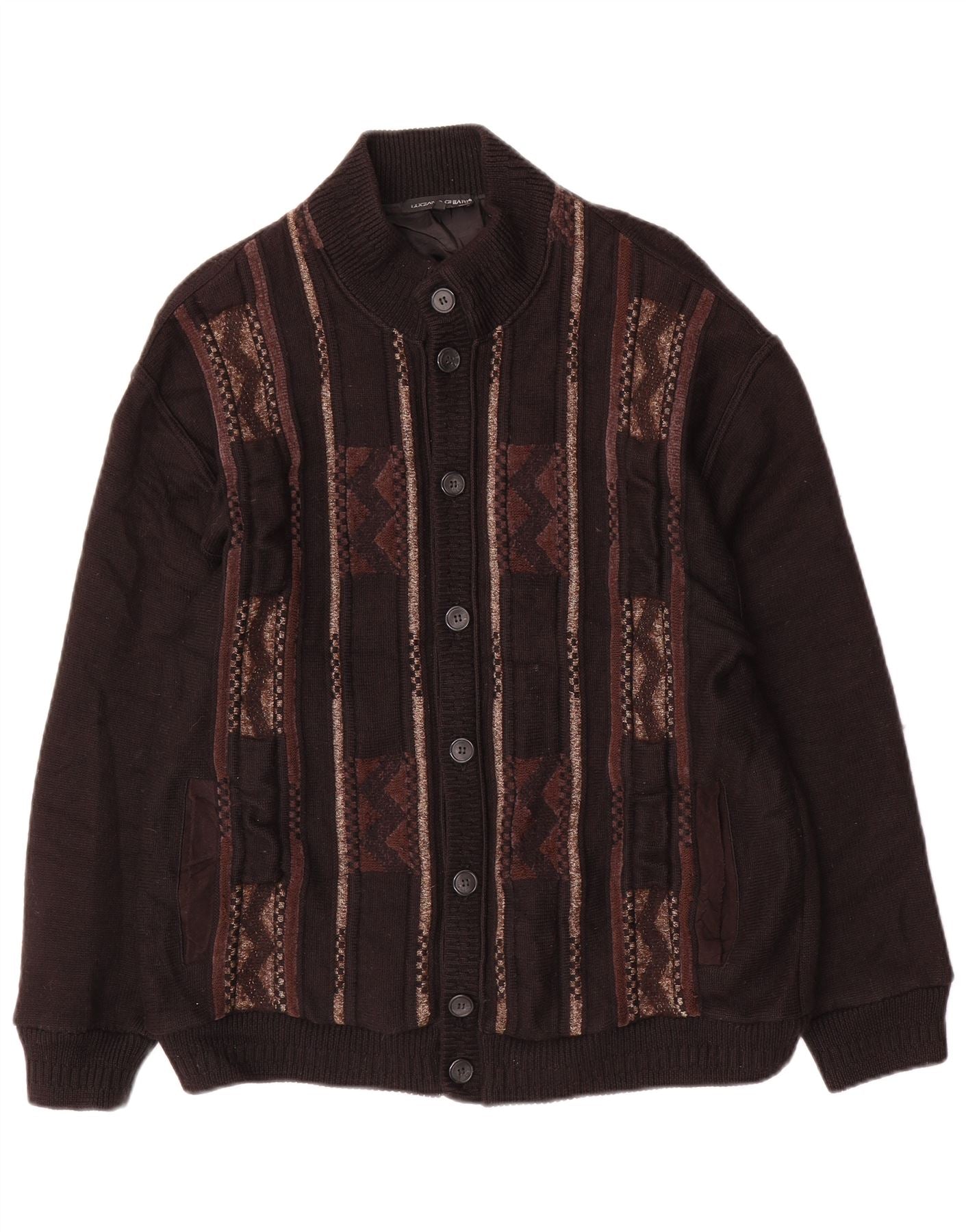 Suéter cardigã masculino LUCIANO CHIARI IT 52 grande lã geométrica preta