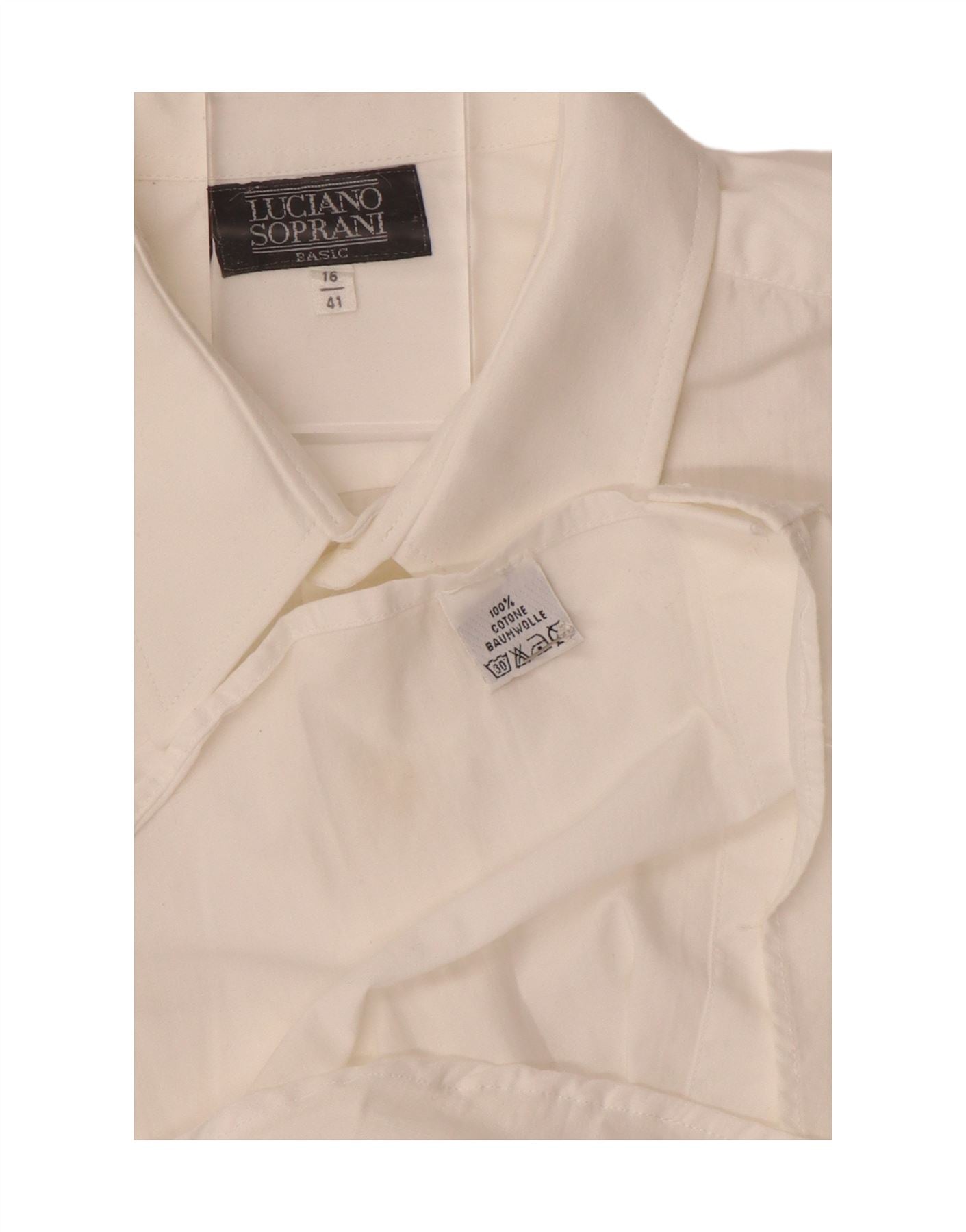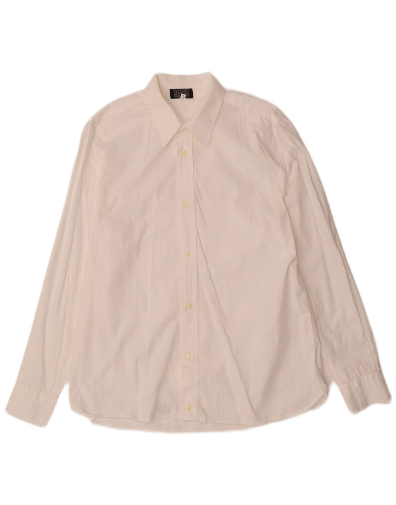 LUCIANO SOPRANI Camisa masculina tamanho 16 41 grande algodão branco