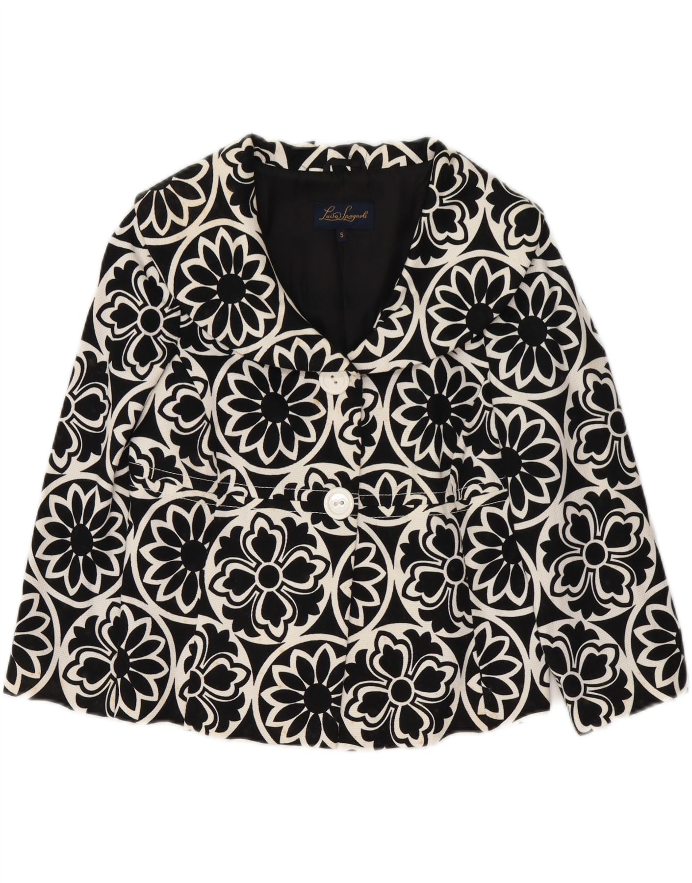 LUISA SPAGNOLI Womens 3/4 Sleeve Blazer Jacket UK 10 Small Black Floral
