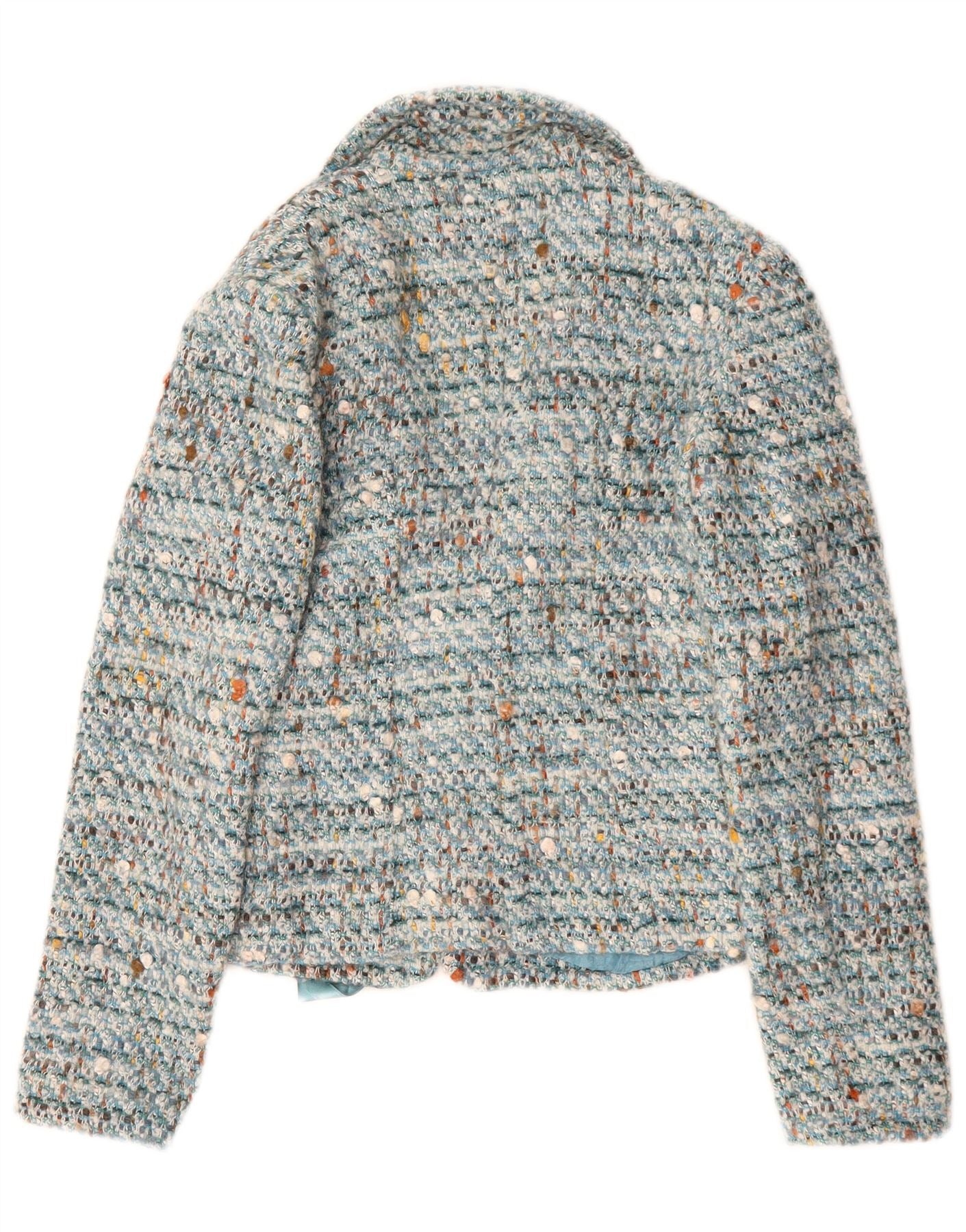 Jaqueta blazer feminina Luisa Spagnoli com gravata frontal IT 40 pequena azul manchada