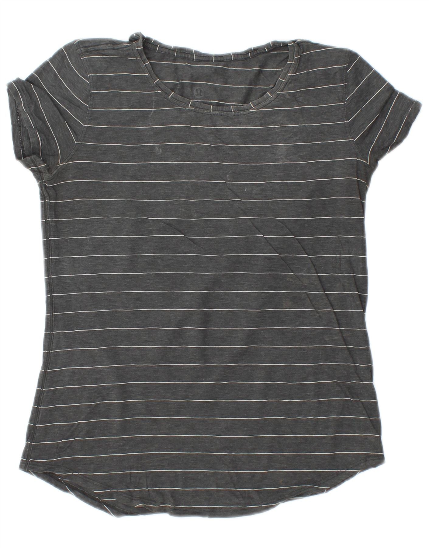 Camiseta feminina LULULEMON Reino Unido 10 pequena listrada cinza