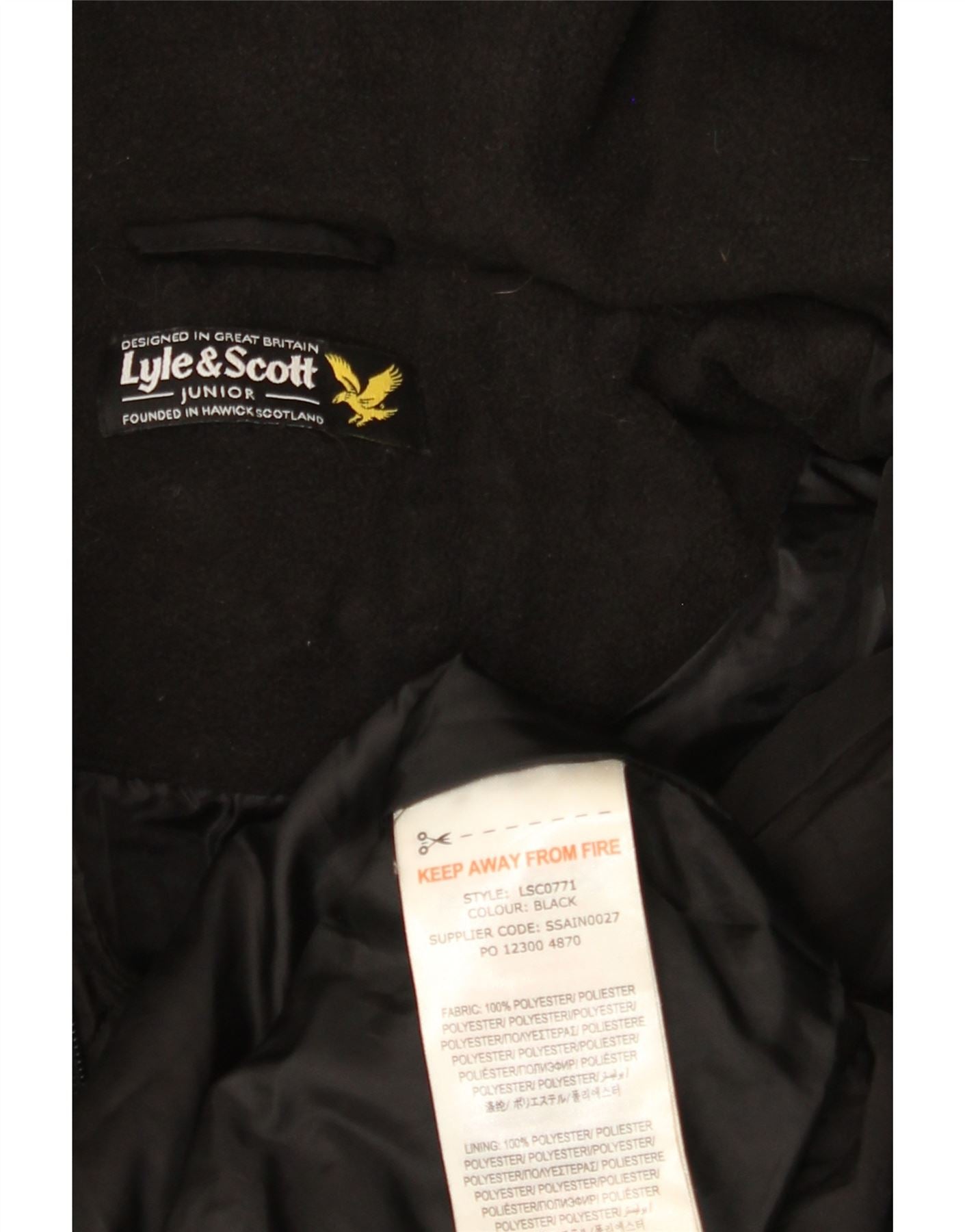 Casaco acolchoado com capuz para meninos LYLE & SCOTT 15-16 anos poliéster preto