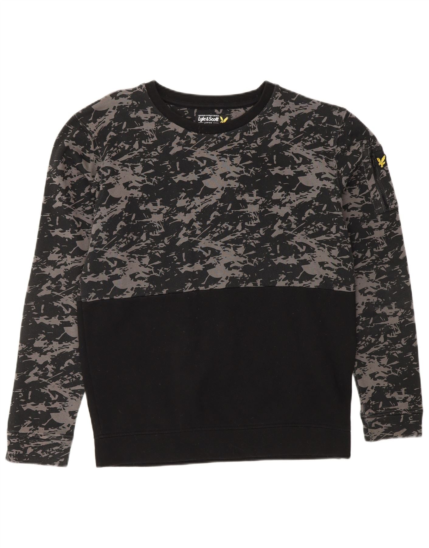 LYLE & SCOTT Boys Sweatshirt Jumper 12-13 Years Black Camouflage Cotton