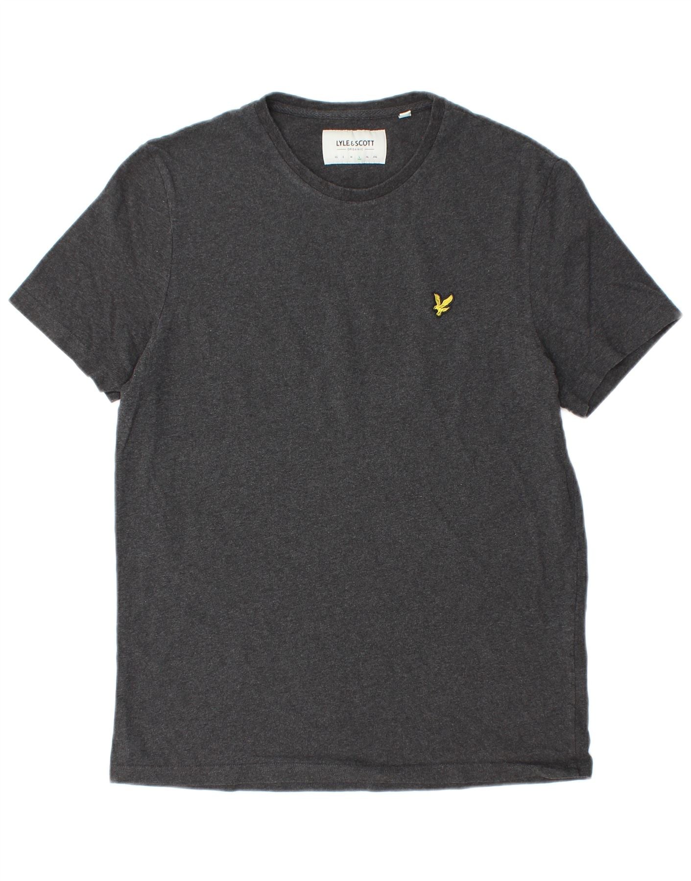 - Descrição da IA: Esta camiseta gráfica masculina da Lyle & Scott é confeccionada em jersey cinza macio 100% algodão. Possui gola redonda clássica e mangas curtas confortáveis. O ajuste regular garante uma silhueta relaxada. Um logotipo amarelo bordado no peito adiciona um detalhe sutil e exclusivo. Este top versátil oferece conforto e estilo no dia a dia.