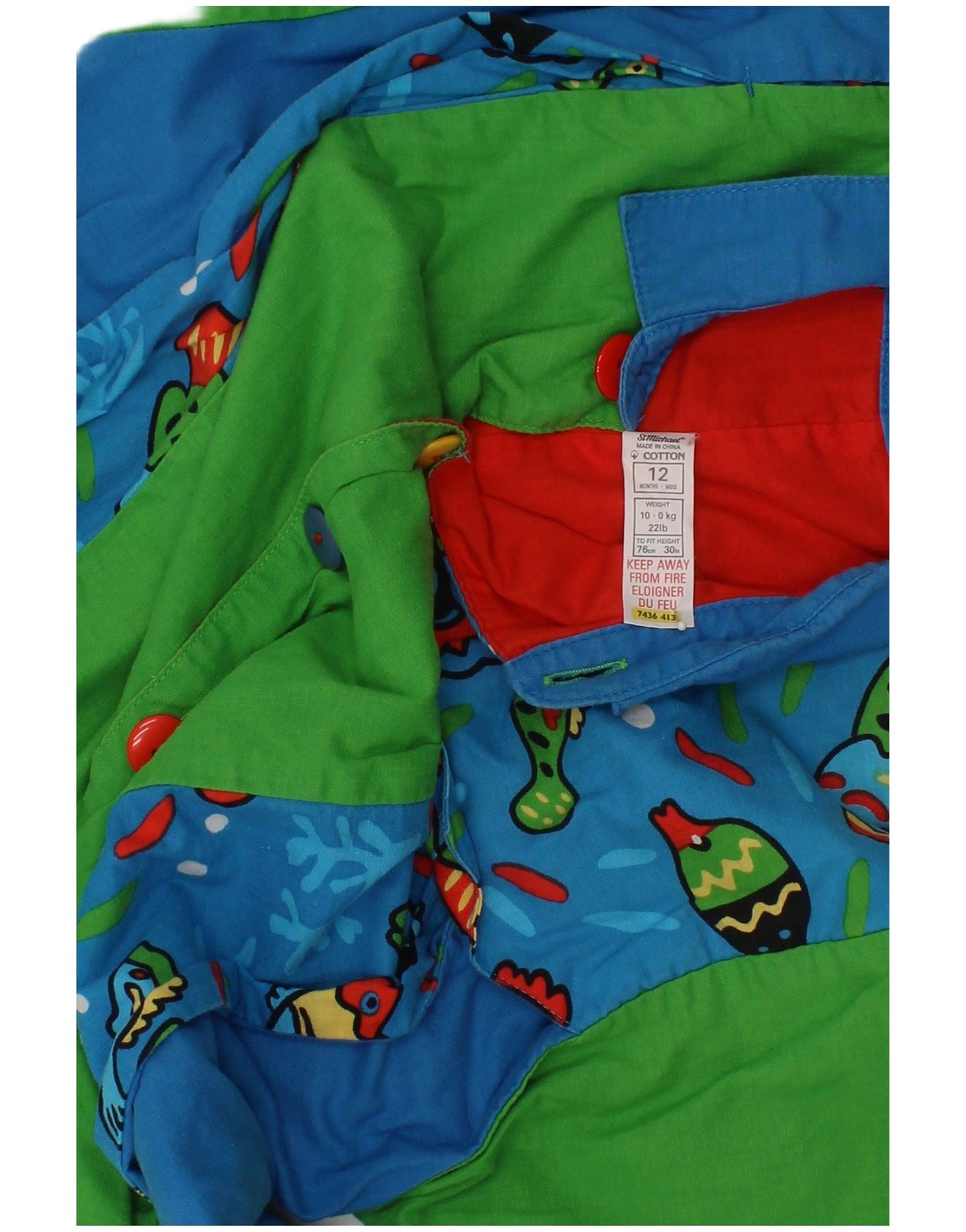 - Descrição da IA: Este macacão St Michael para meninos é confeccionado em tecido 100% algodão, garantindo conforto. Possui uma estampa animal multicolorida vibrante, tornando-o lúdico. O decote com gola e as mangas curtas oferecem um visual clássico. Os fechos de botão proporcionam facilidade de vestir. Um ajuste solto permite movimentos irrestritos. Bolsos práticos agregam funcionalidade, completando esta peça charmosa e confortável.