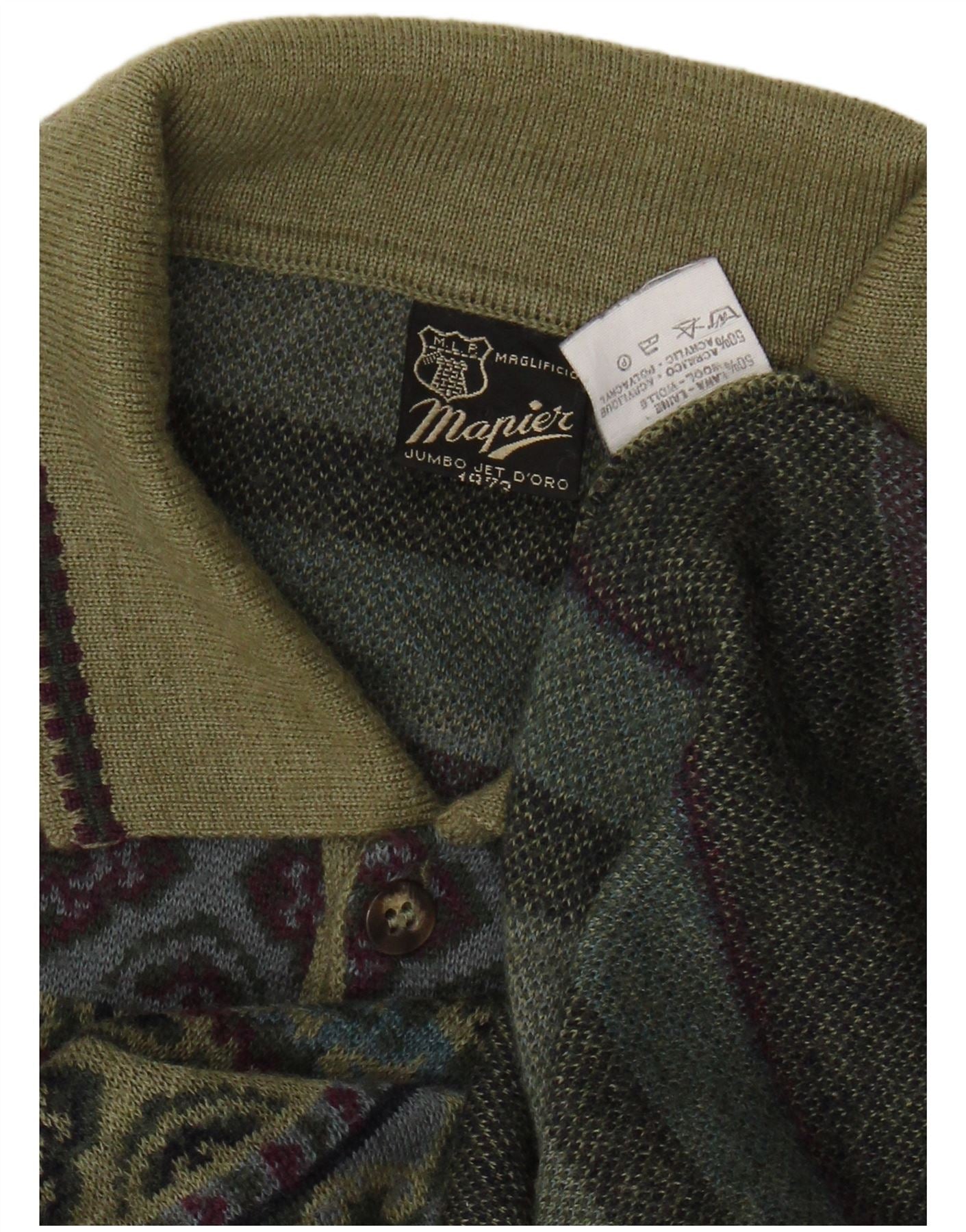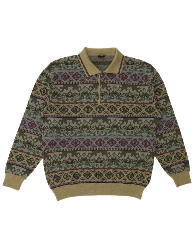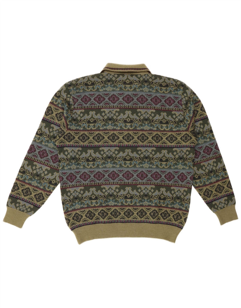 MAPIER Boys Polo Neck Jumper Sweater 15-16 Years Green Fair Isle Wool