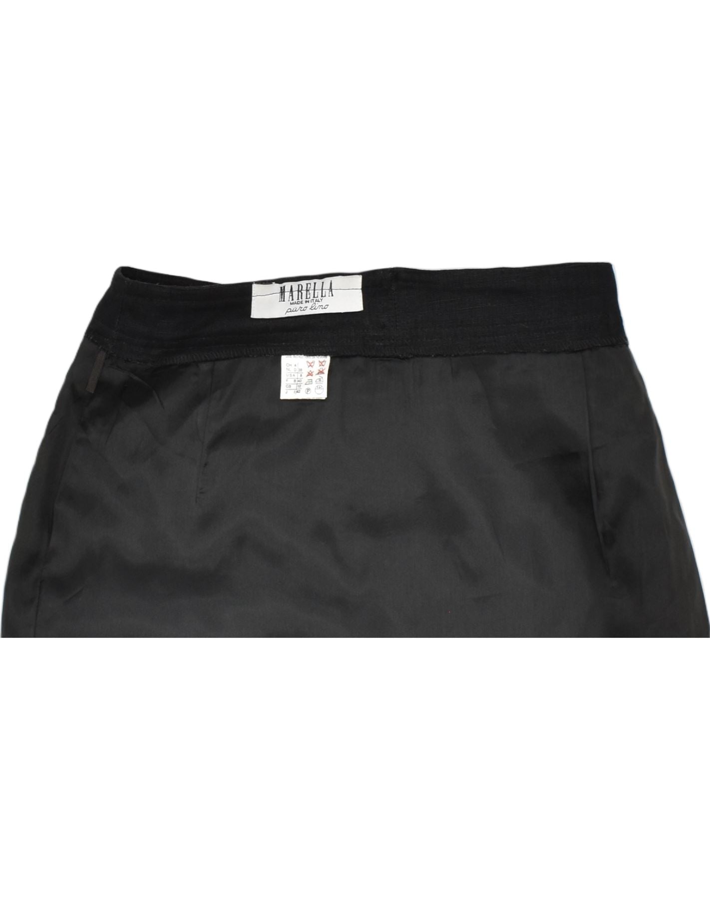 MARELLA saia reta feminina de cintura alta Reino Unido 12 médio W26 linho preto
