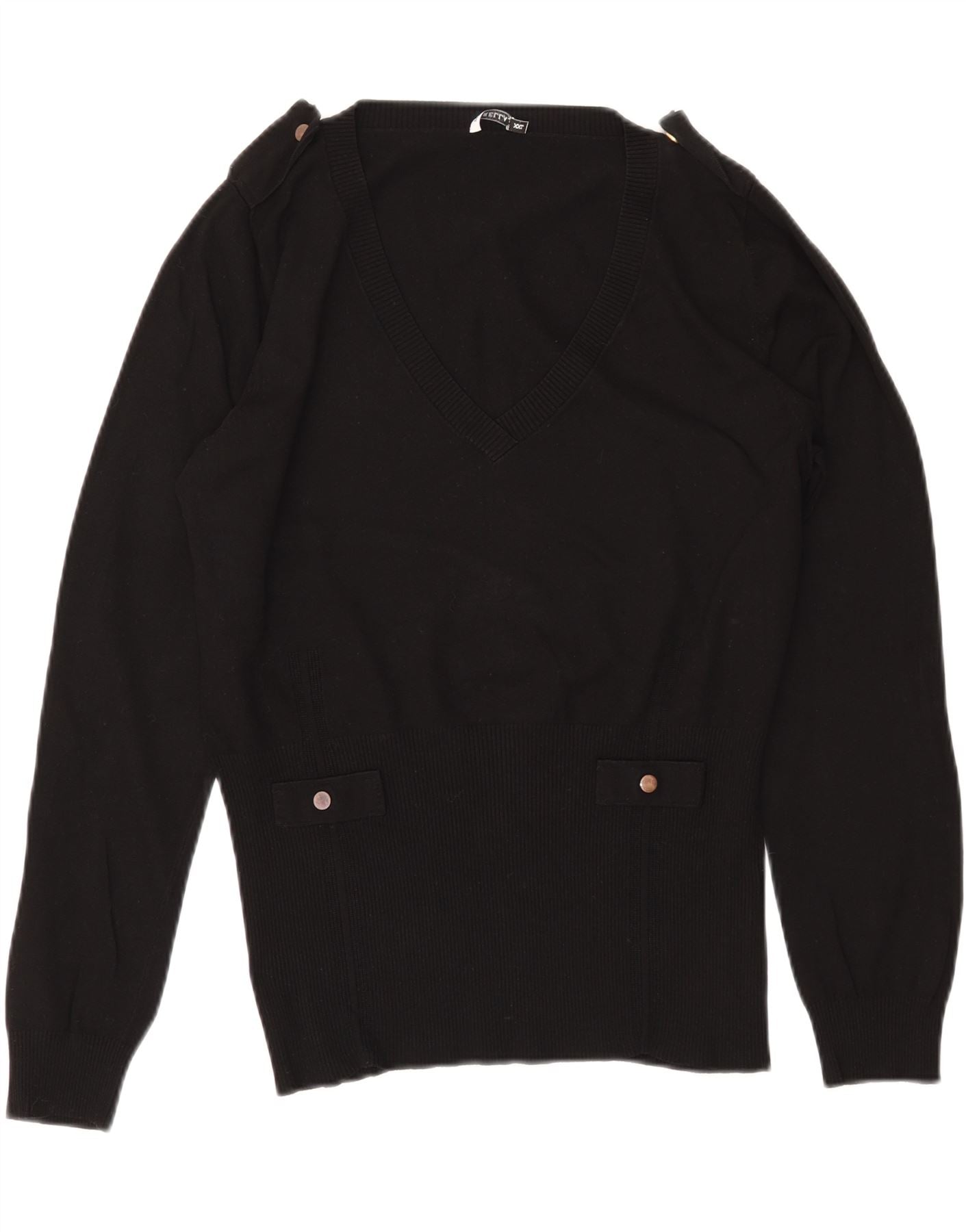MARELLA Suéter feminino militar com decote em V Reino Unido 20 2XL Viscose preta