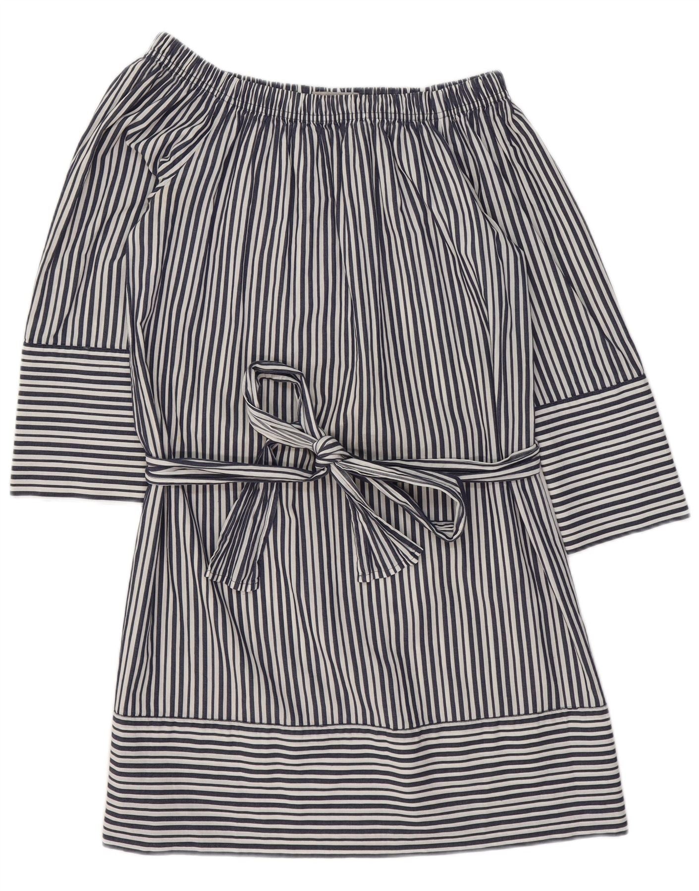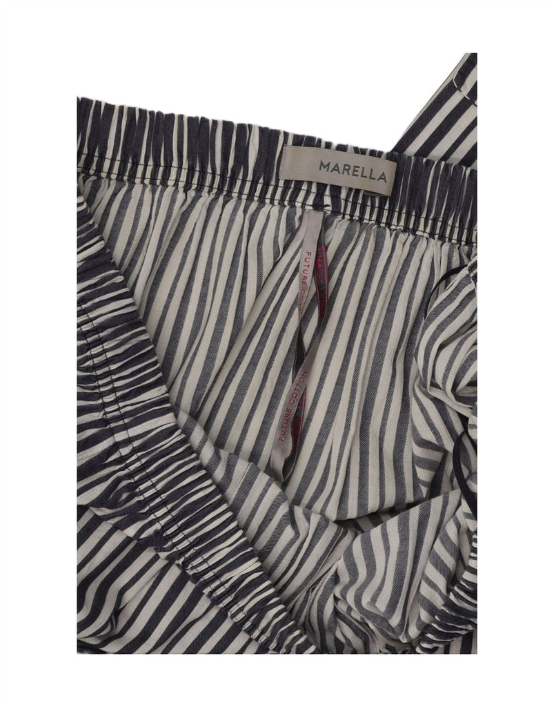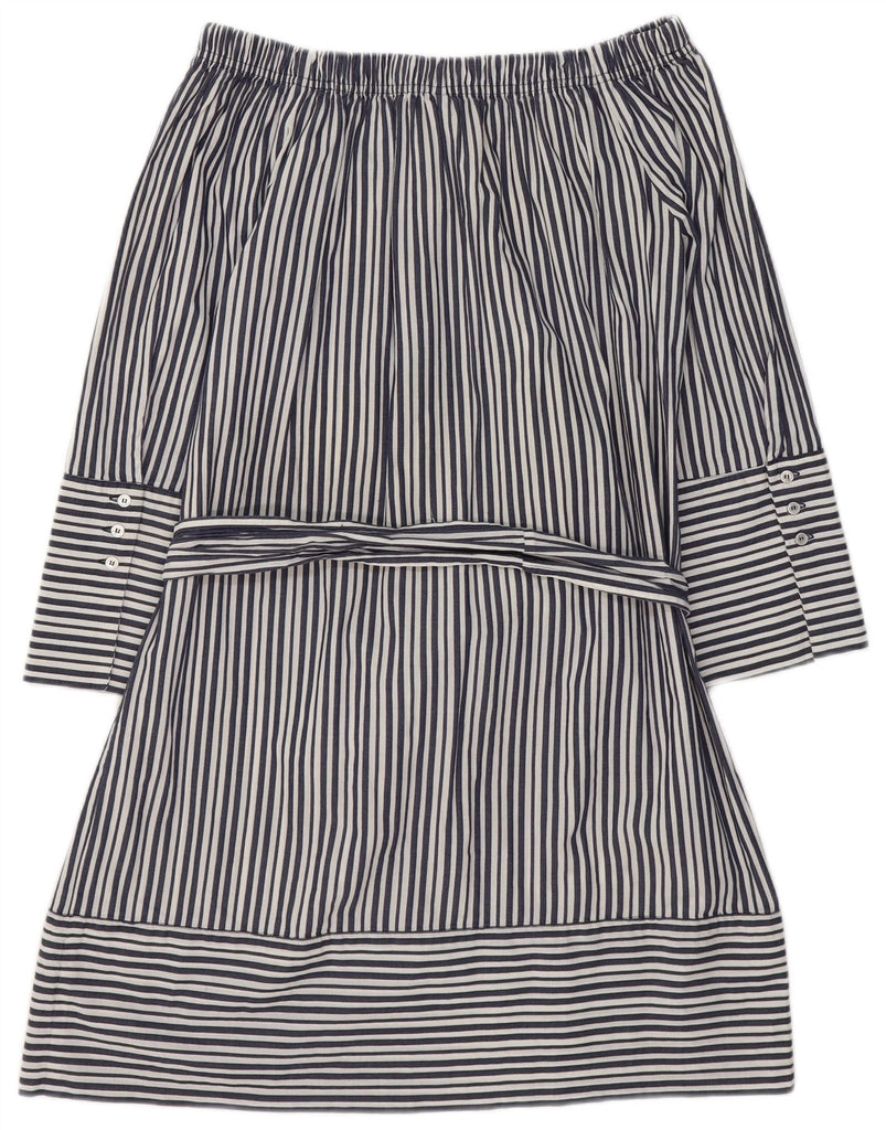 MARELLA Womens Off Shoulder Dress UK 12 Medium Navy Blue Pinstripe