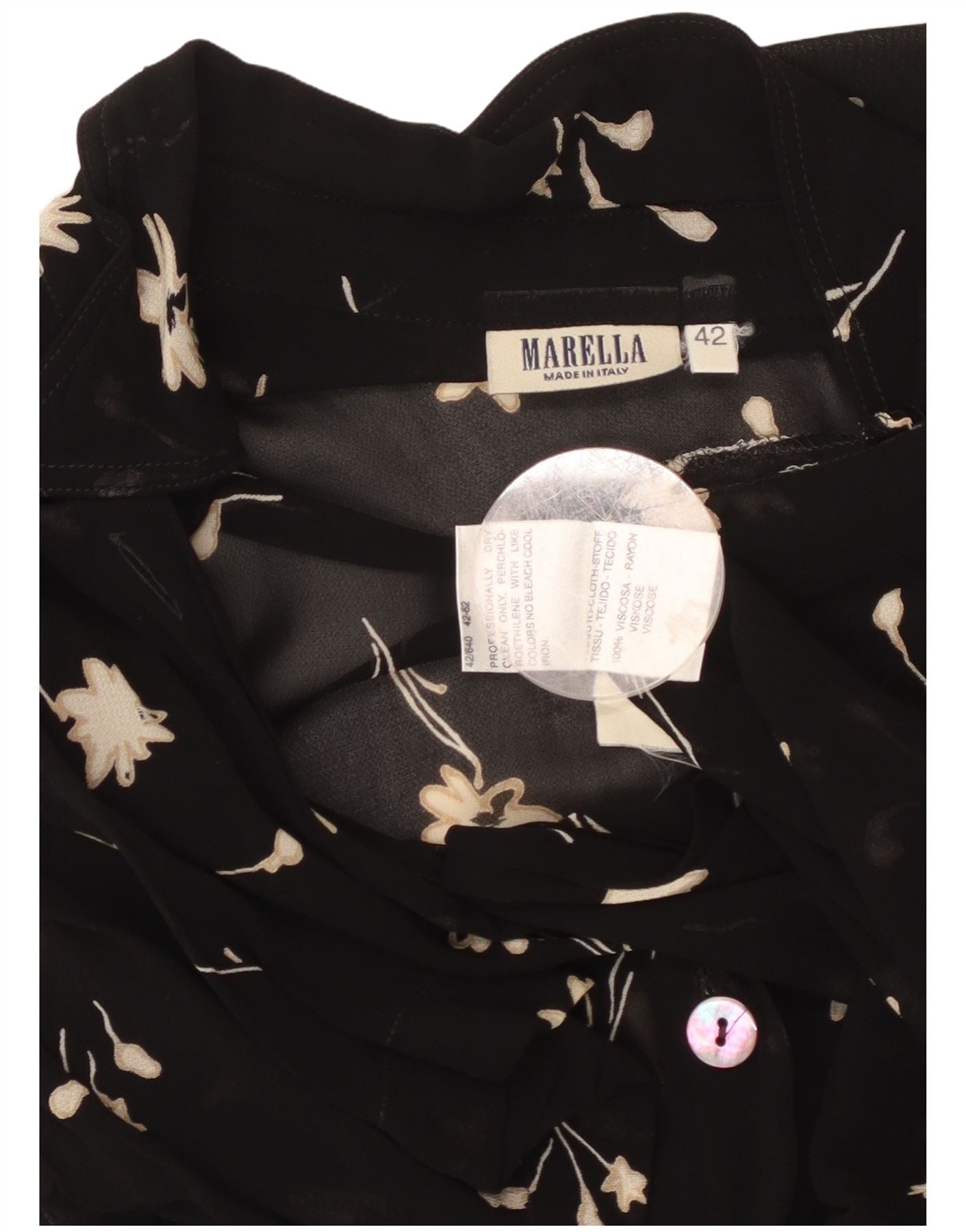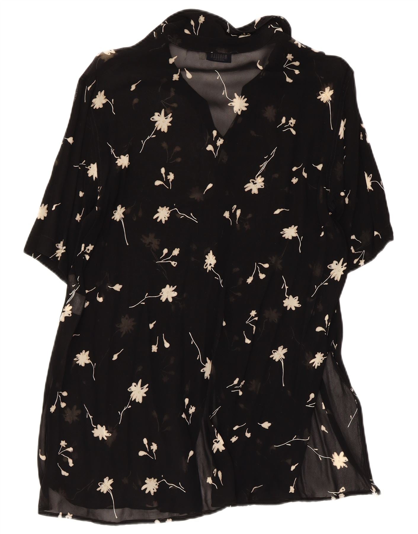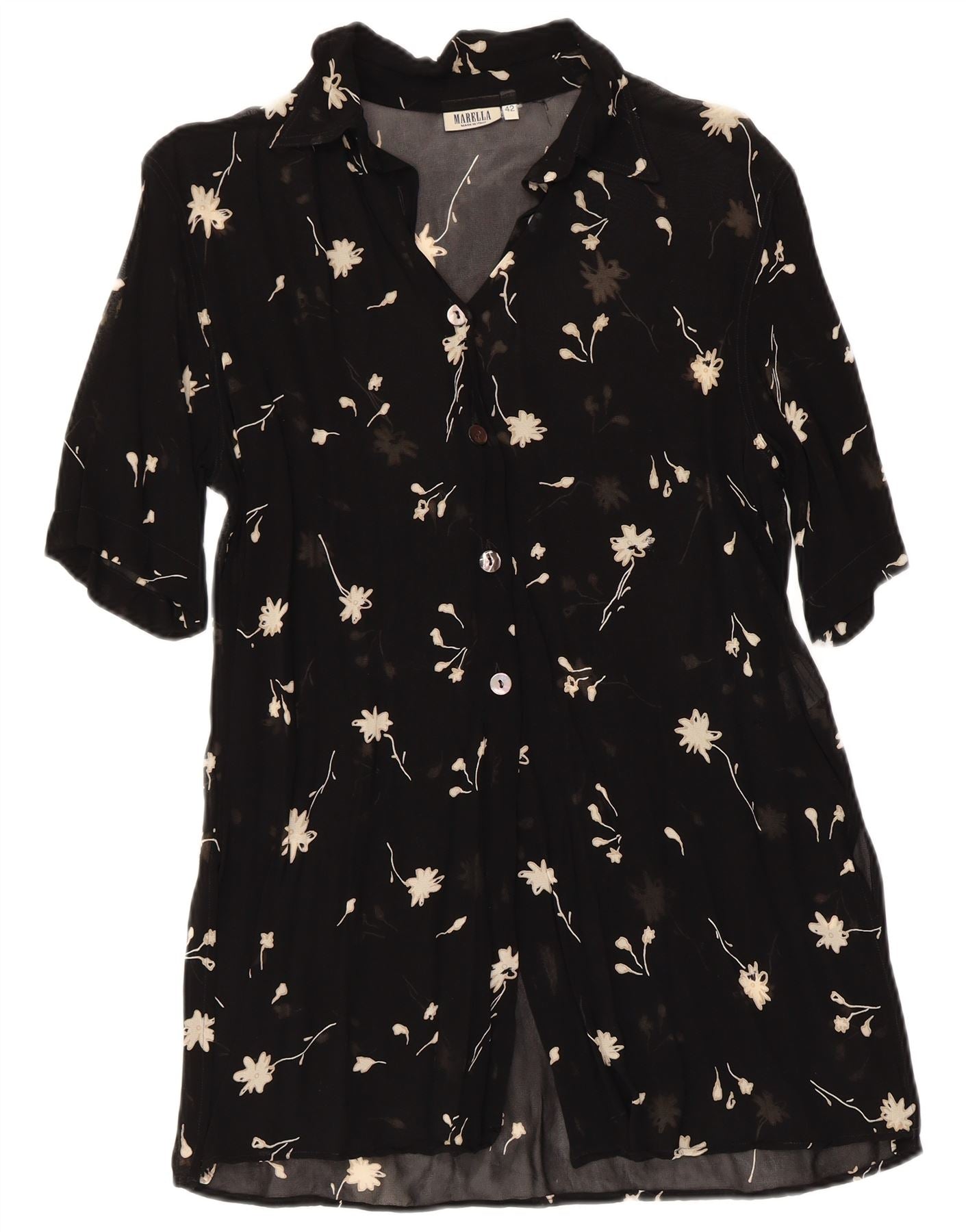 MARELLA Womens Short Sleeve Shirt Blouse IT 42 Medium Black Floral Viscose