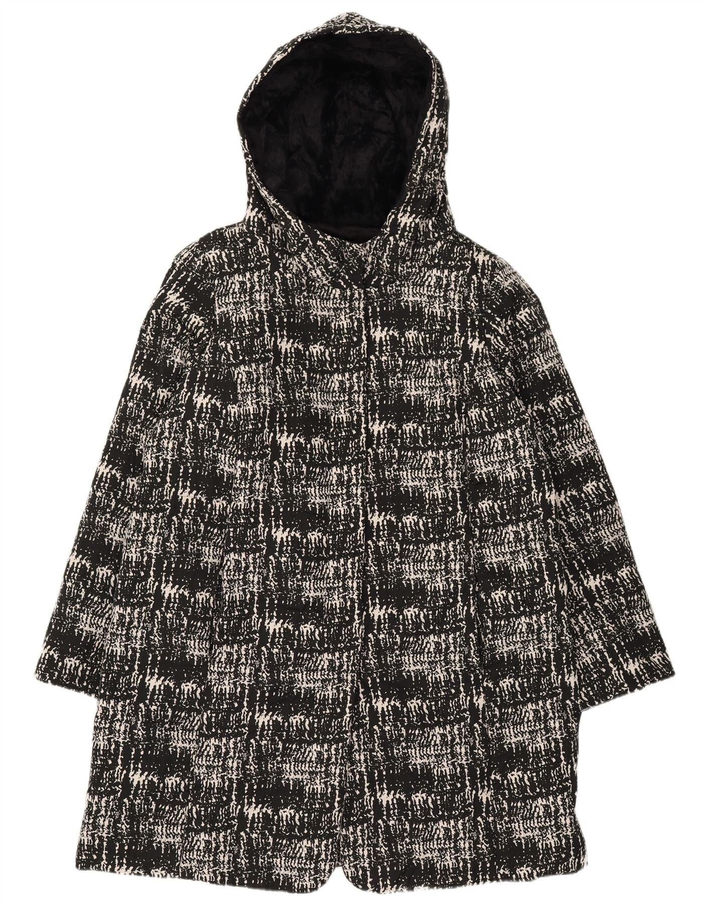 MARINA RINALDI Sobretudo feminino com capuz e padrão abstrato tamanho 25 grande preto