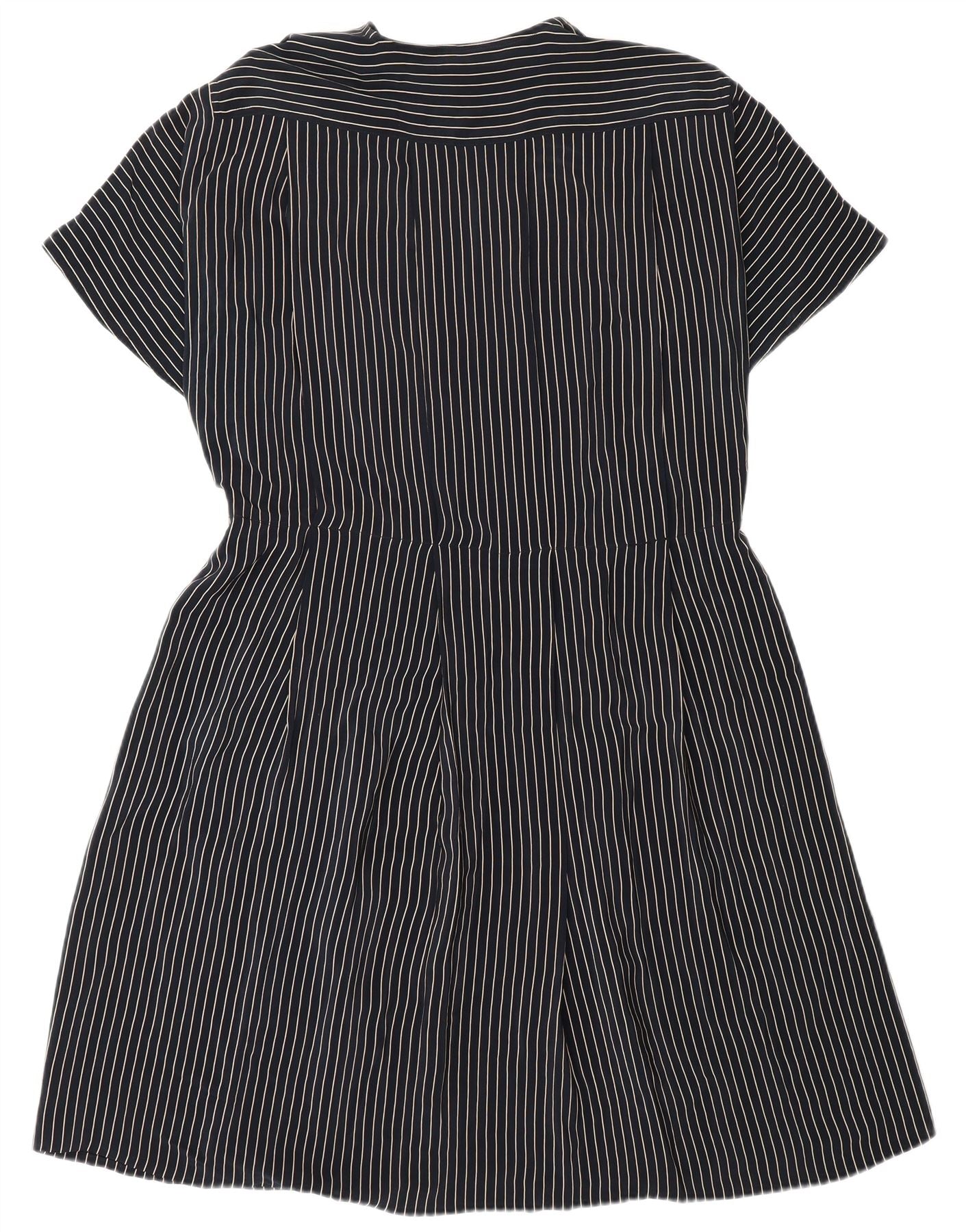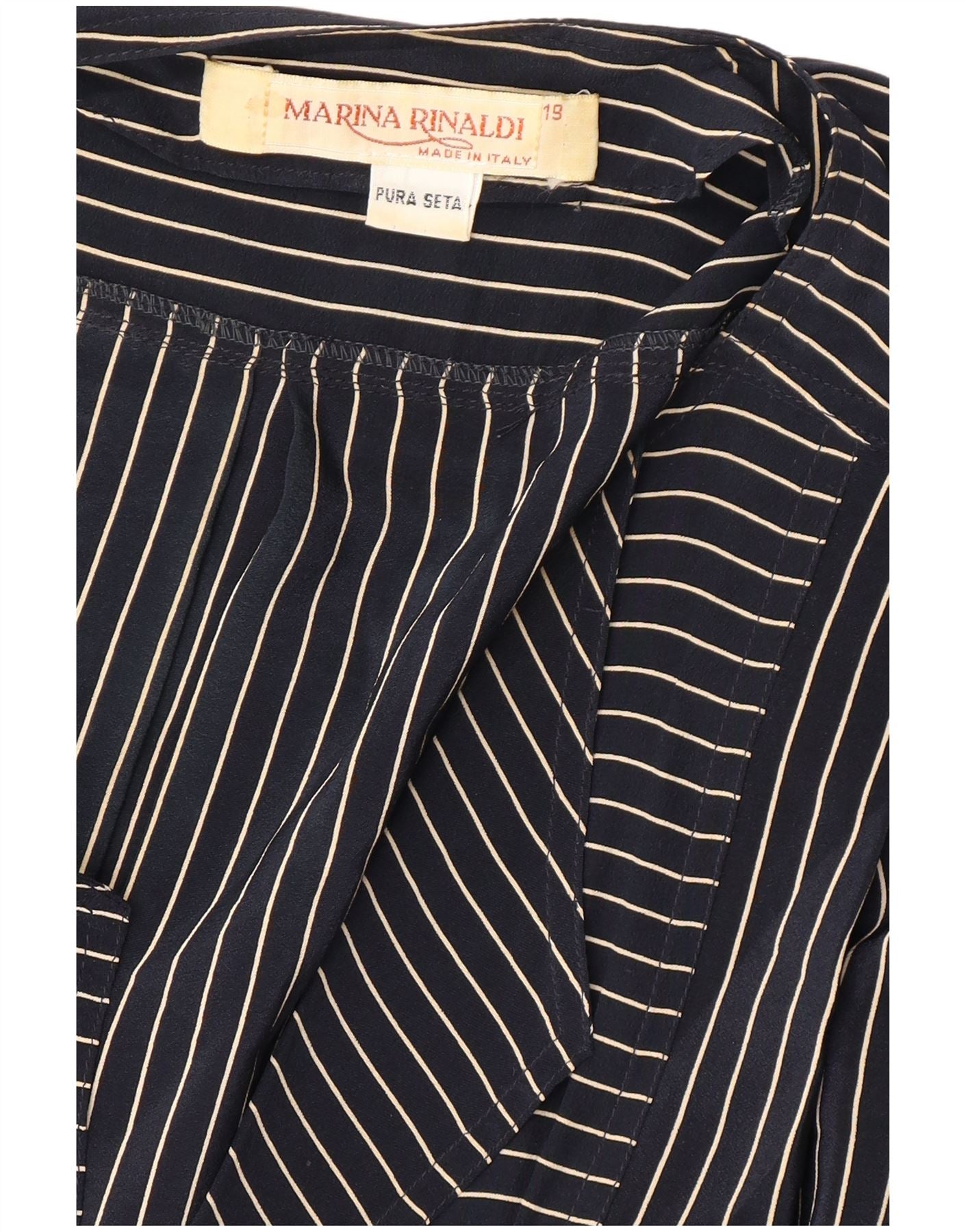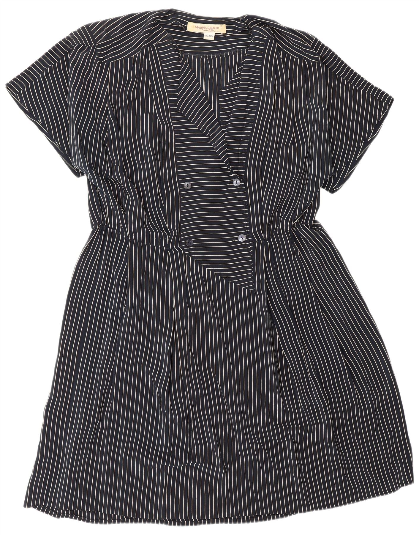 MARINA RINALDI Vestido feminino evasê tamanho 19 pequeno azul marinho risca de giz seda