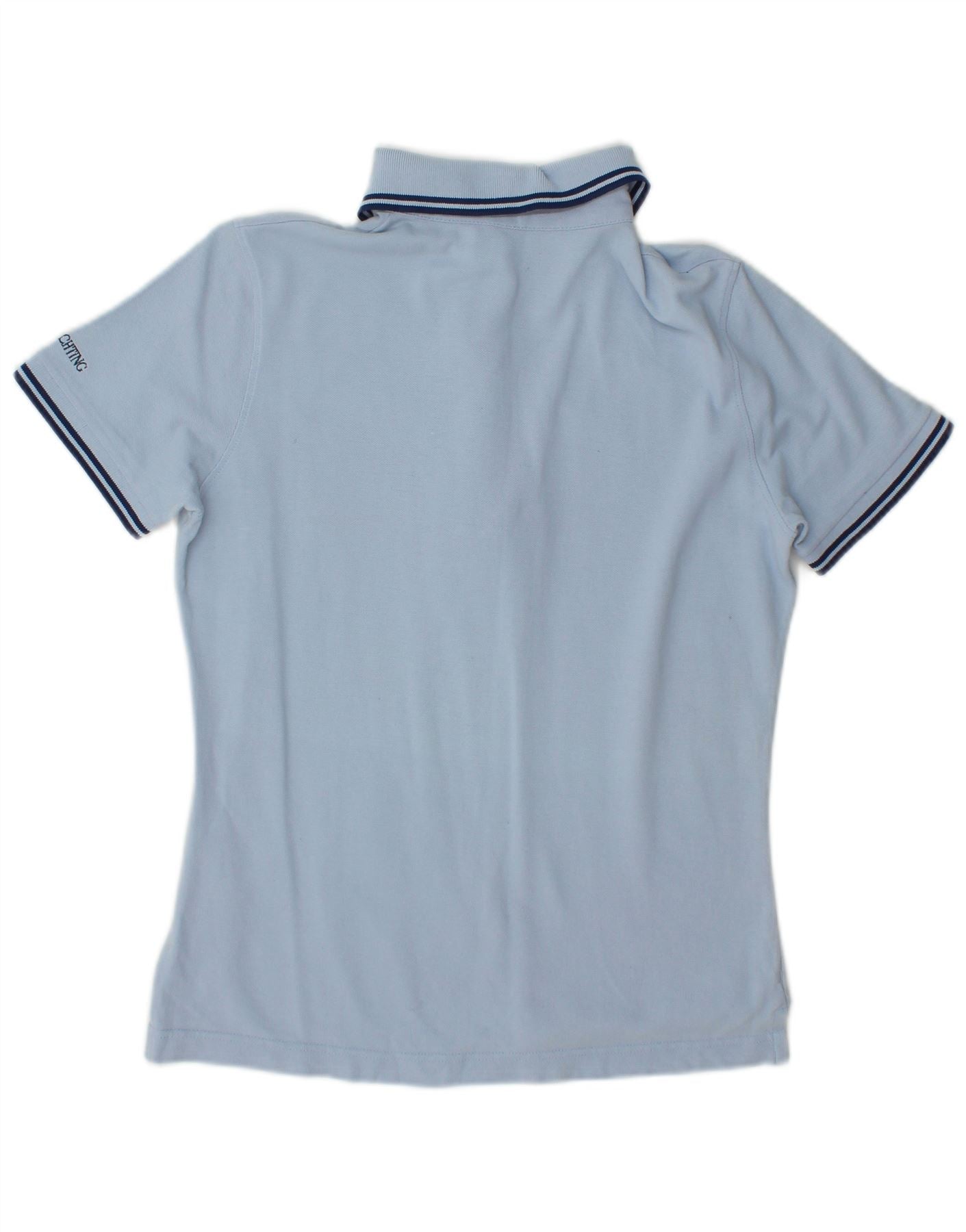 Camisa pólo gráfica feminina Marina Yachting Reino Unido 10 algodão azul pequeno