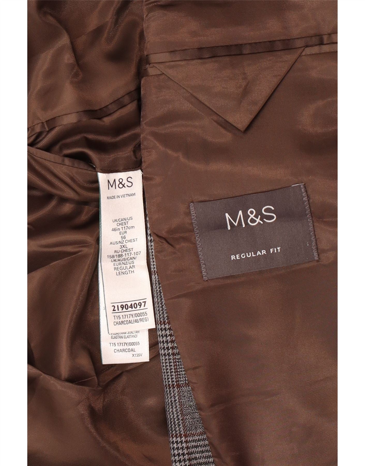 Jaqueta blazer masculina de 2 botões Marks & Spencer Reino Unido 46 3XL poliéster xadrez cinza