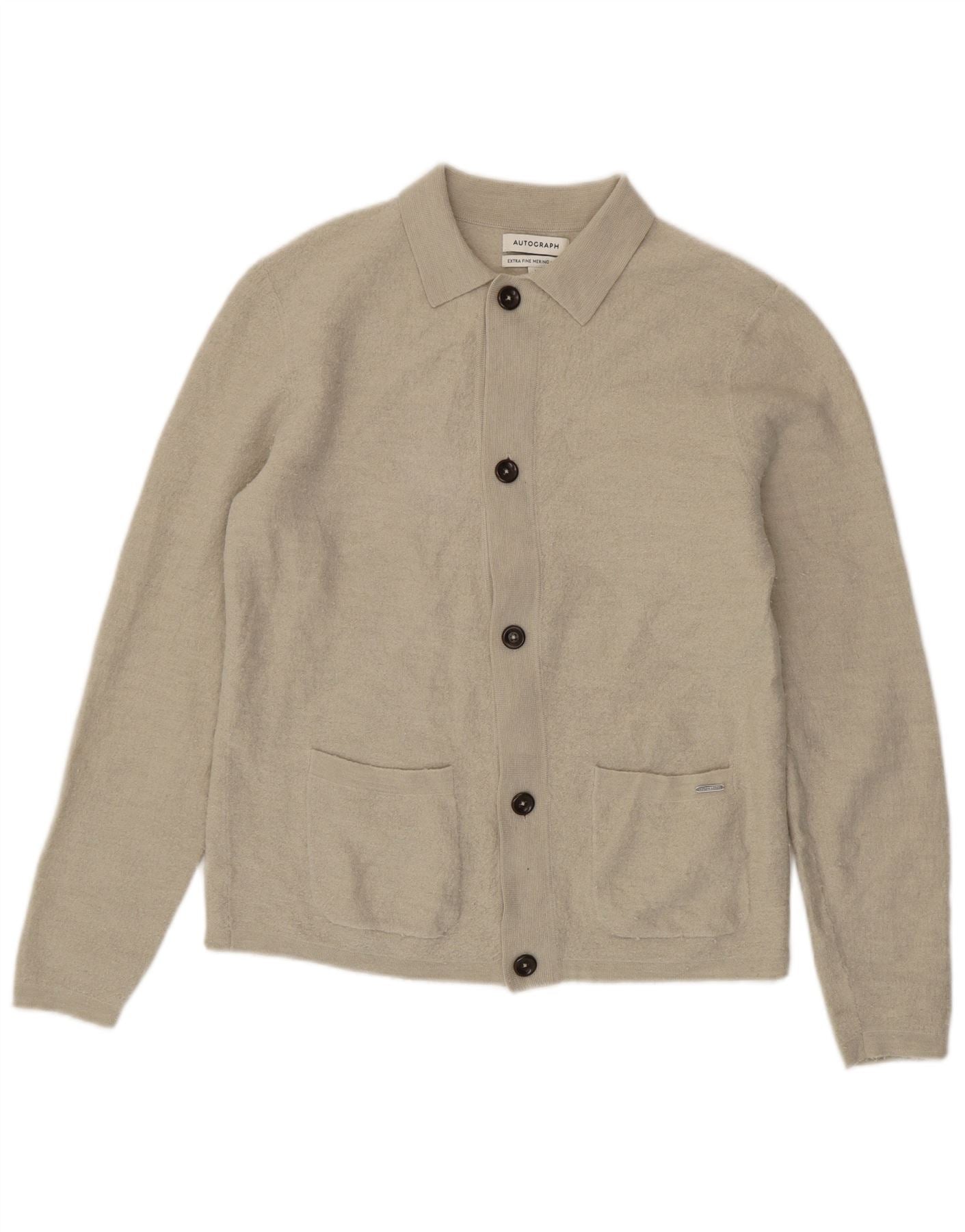 Suéter masculino Marks & Spencer Autograph Cardigan lã merino bege médio