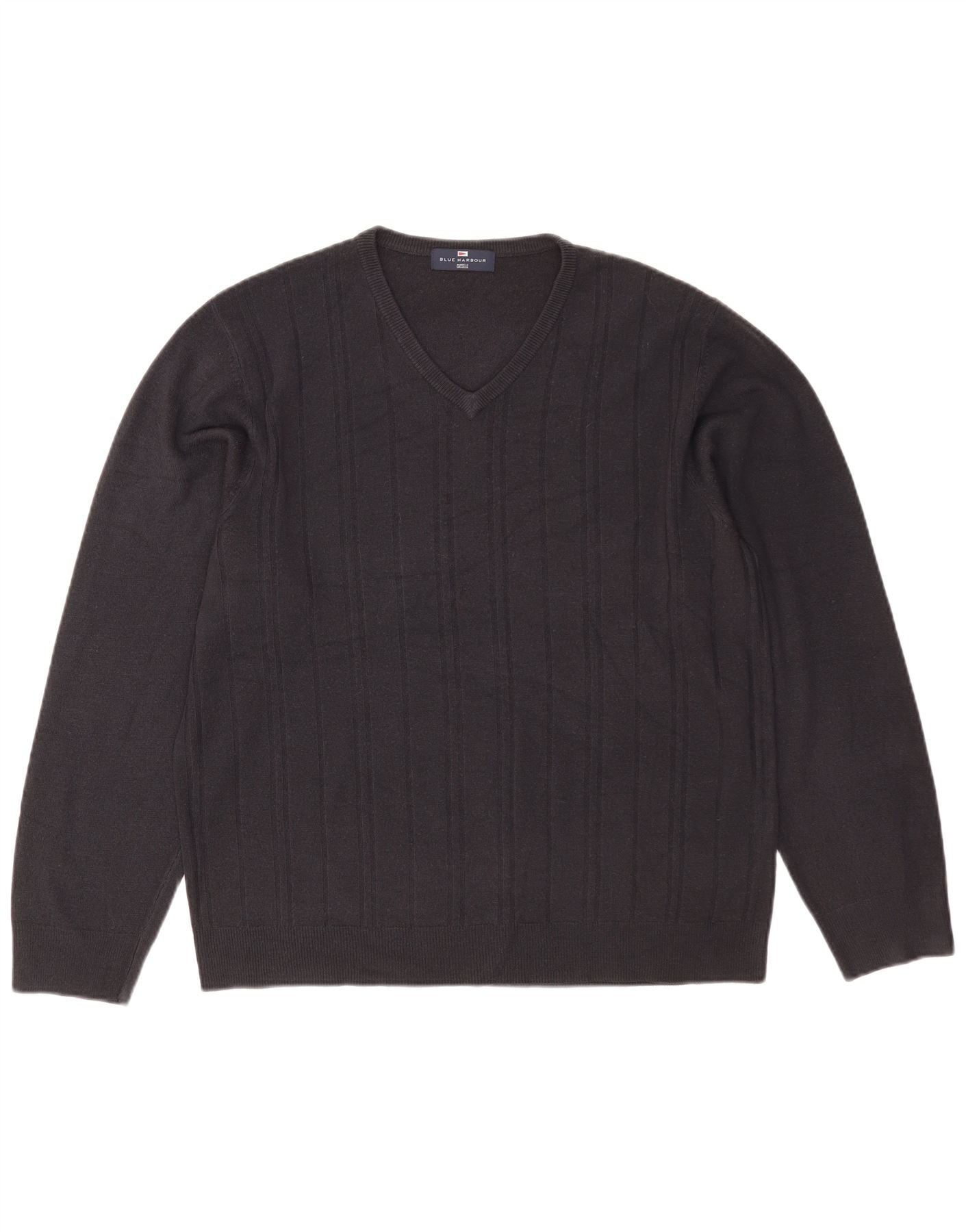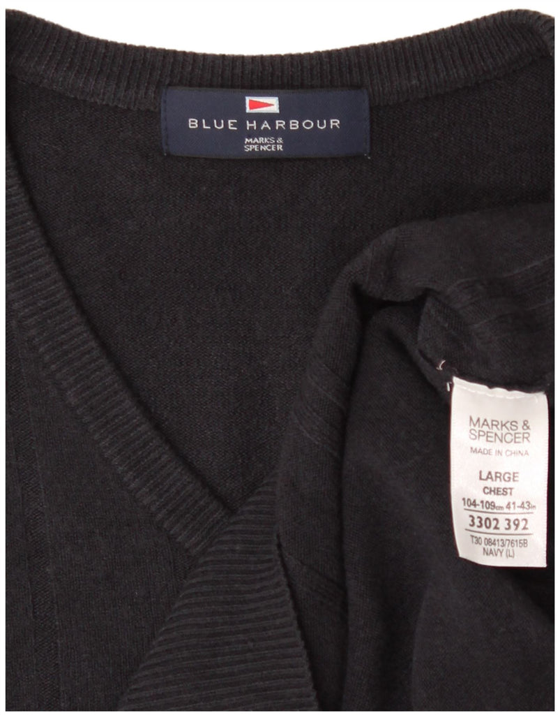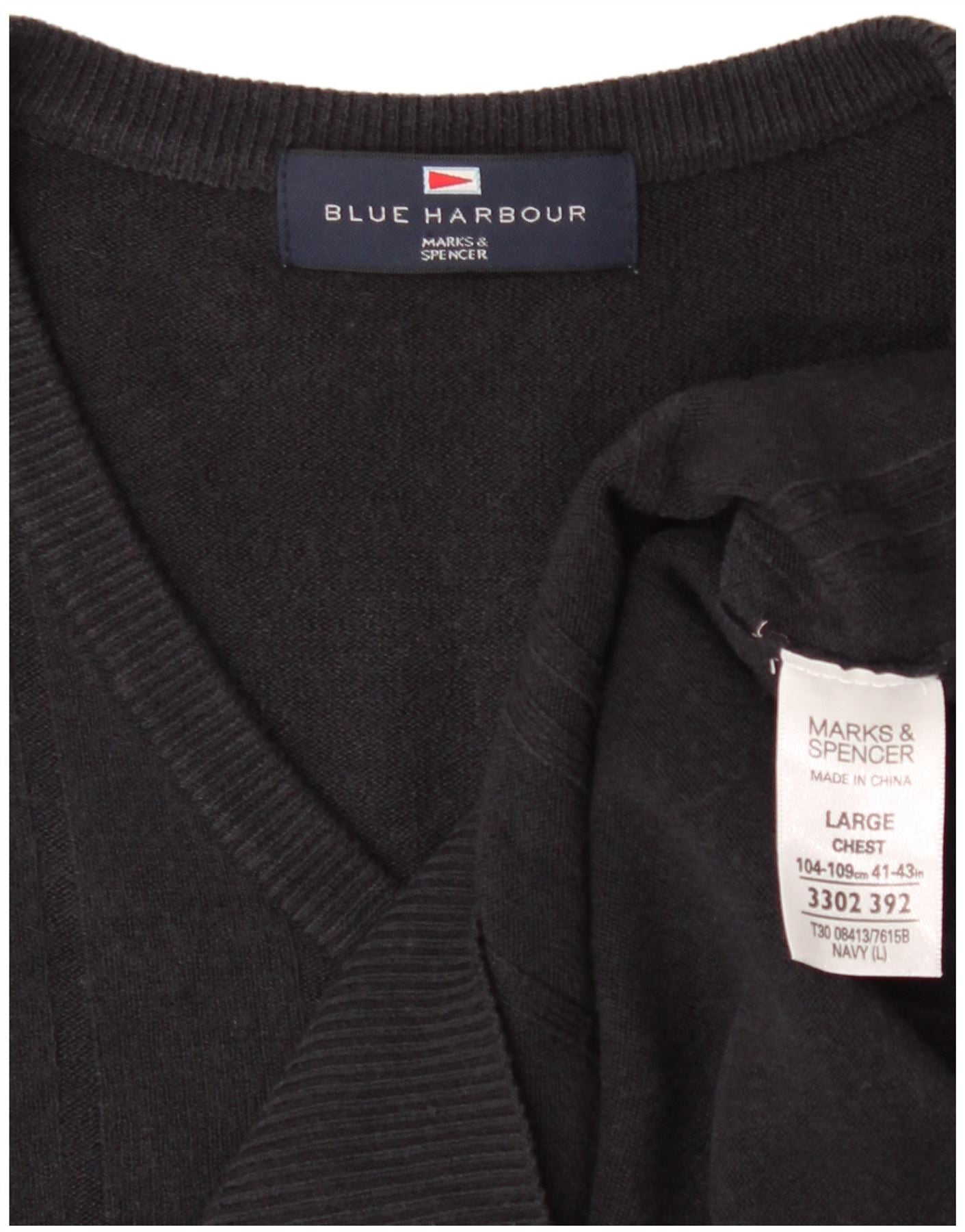 MARKS & SPENCER Mens Blue Harbour V-Neck Jumper Sweater Large Navy Blue