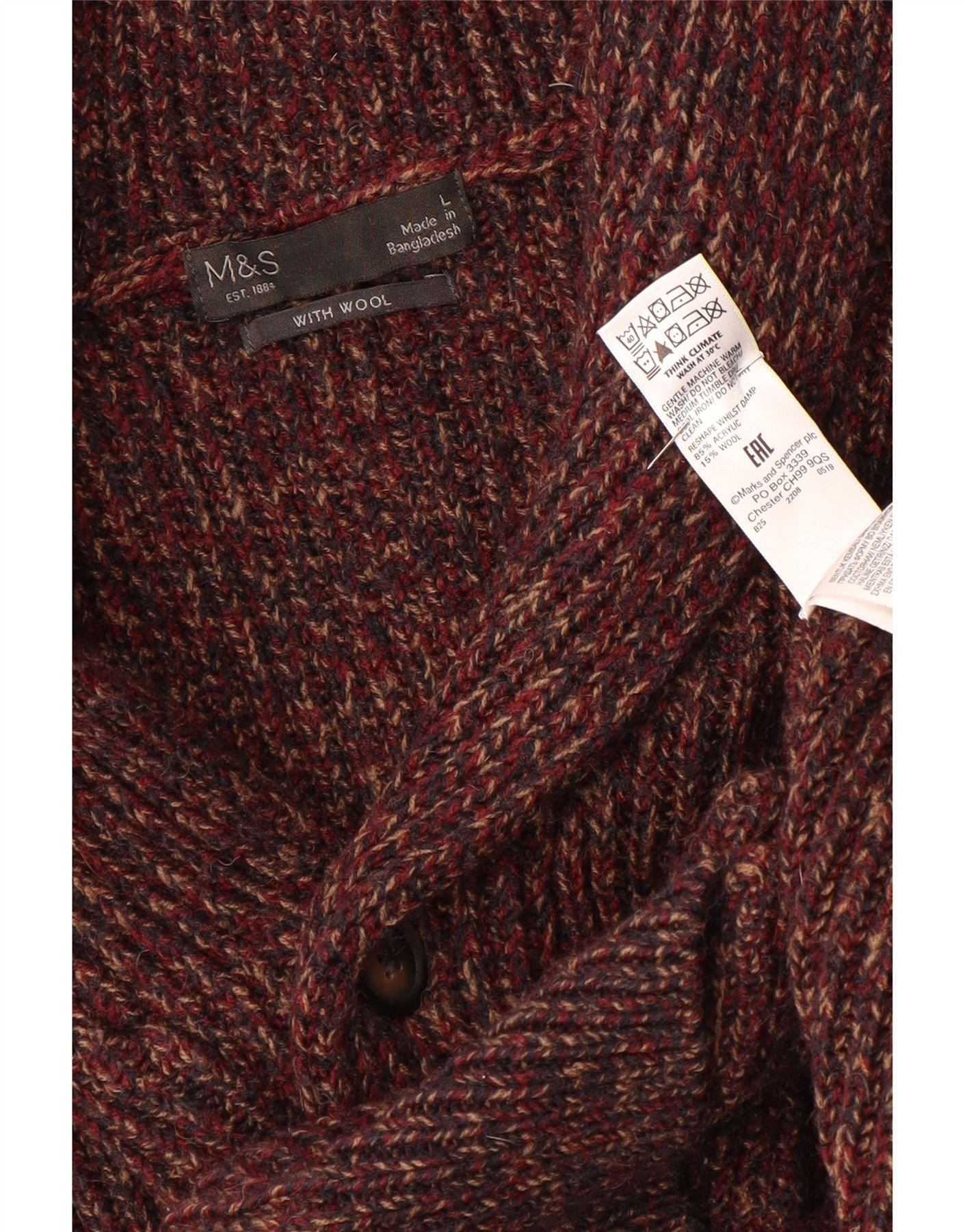 Suéter cardigã masculino MARKS & SPENCER grande acrílico manchado cor de vinho