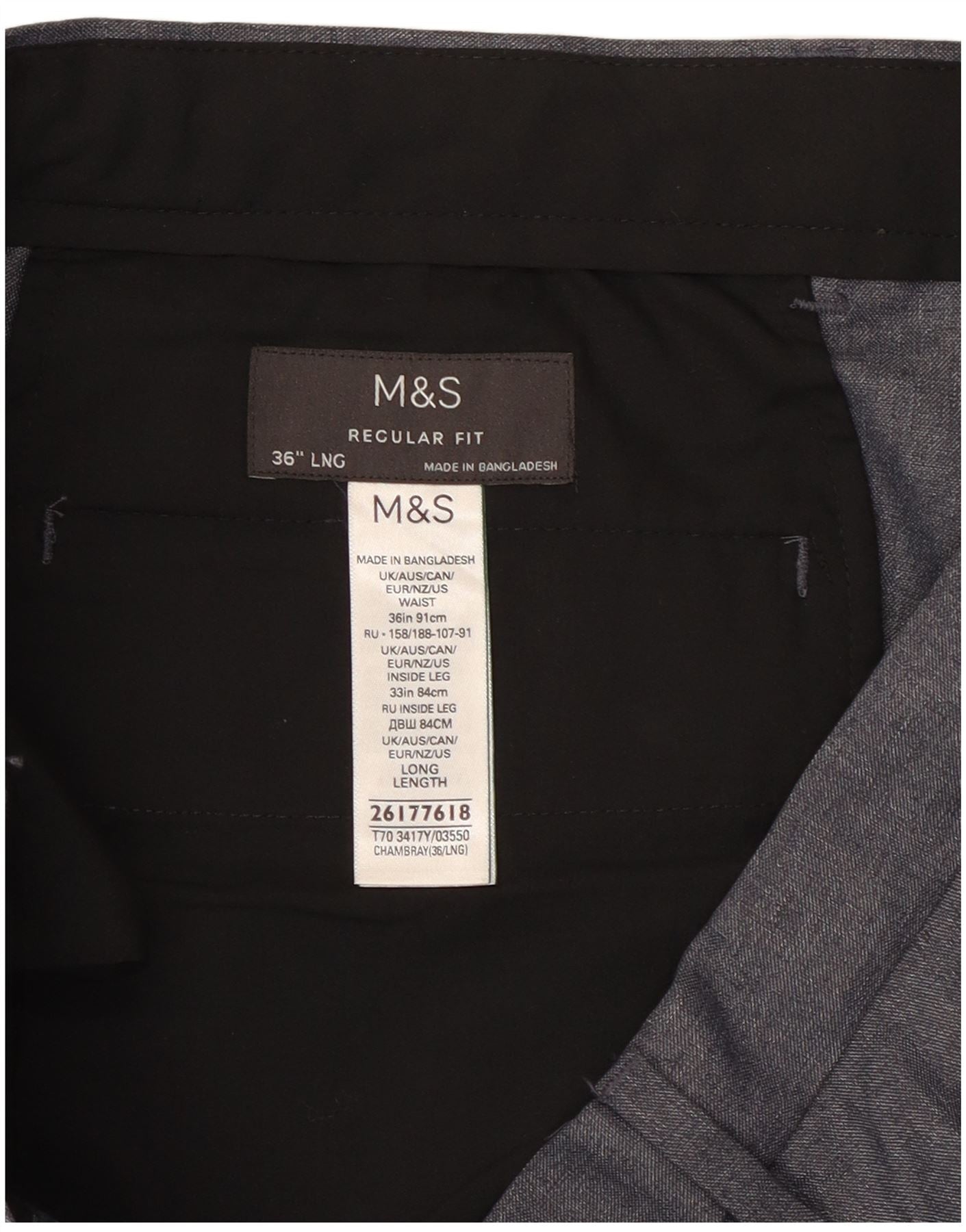 - Descrição da IA: Estas calças masculinas Marks Spencer são confeccionadas em tecido de cambraia cinza, oferecendo uma textura refinada. Apresentam um corte regular com pernas retas para uma silhueta clássica. O fecho de botão garante uma frente segura e elegante. Bolsos práticos estão incluídos para maior comodidade. Este estilo clássico oferece um apelo atemporal.