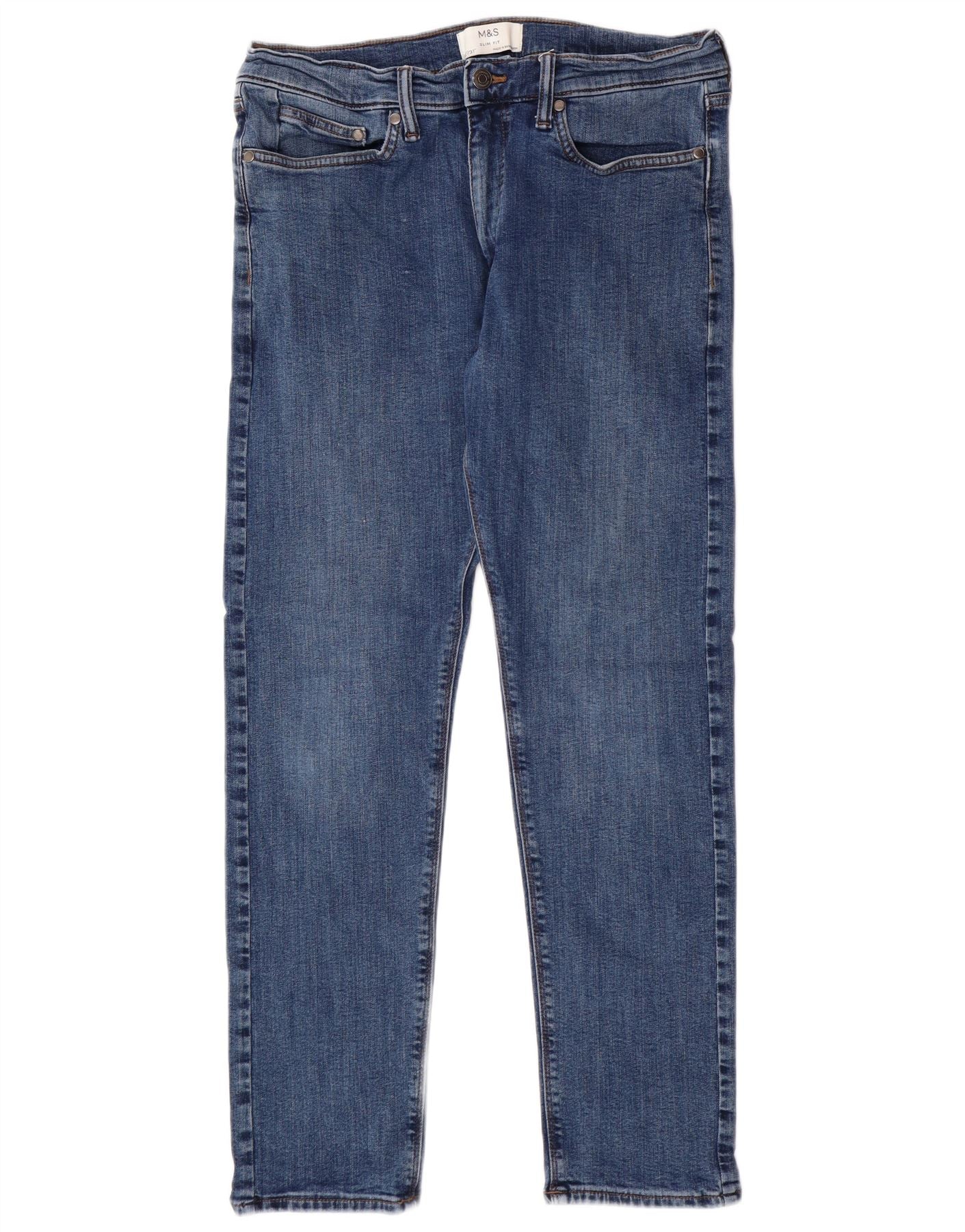 Jeans slim masculino MARKS & SPENCER W32 L29 azul algodão clássico