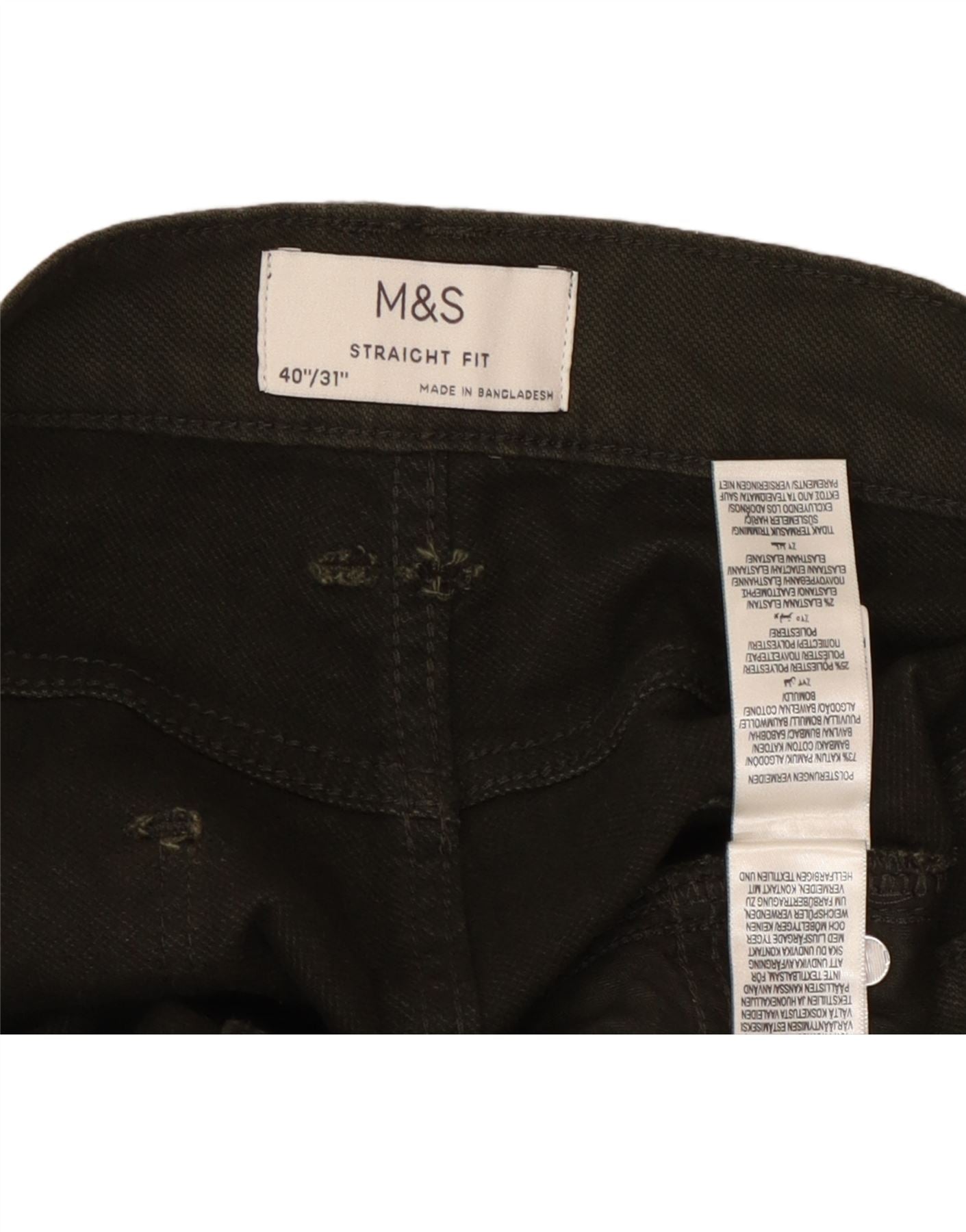 Calça masculina reta casual MARKS & SPENCER W40 L31 algodão cáqui