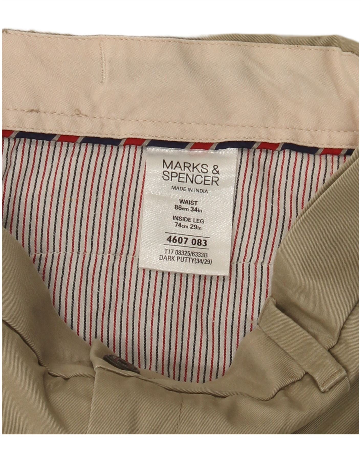 Calça chino reta masculina MARKS & SPENCER W34 L29 algodão bege