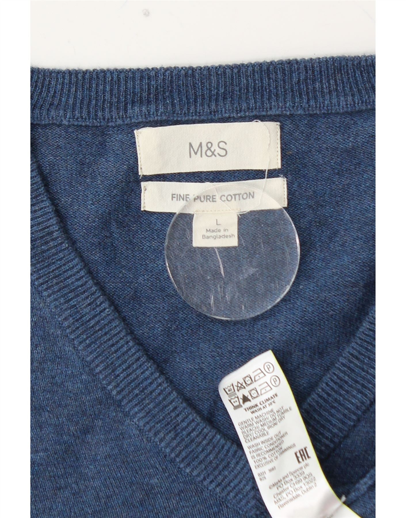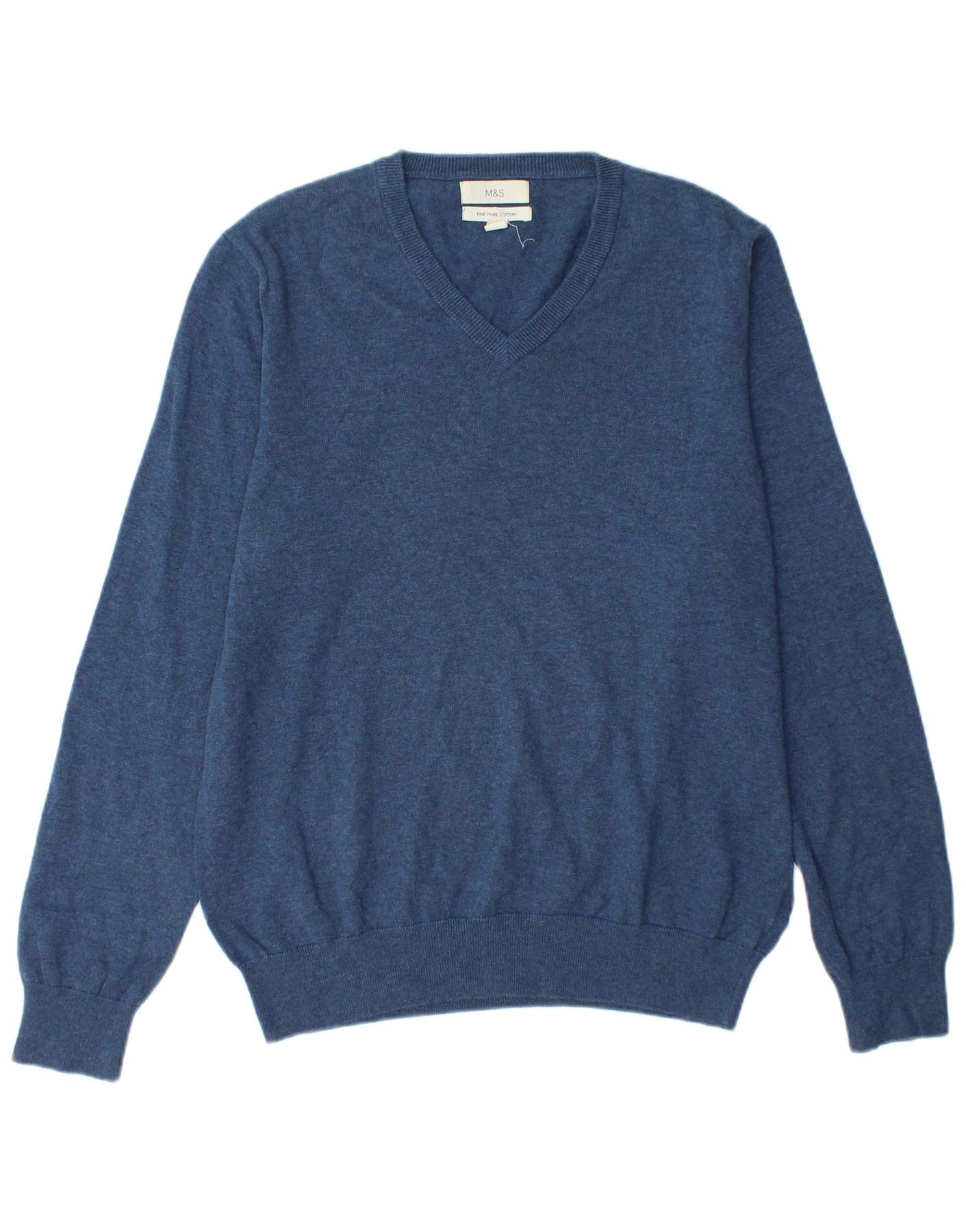MARKS & SPENCER Suéter masculino com decote em V grande algodão azul