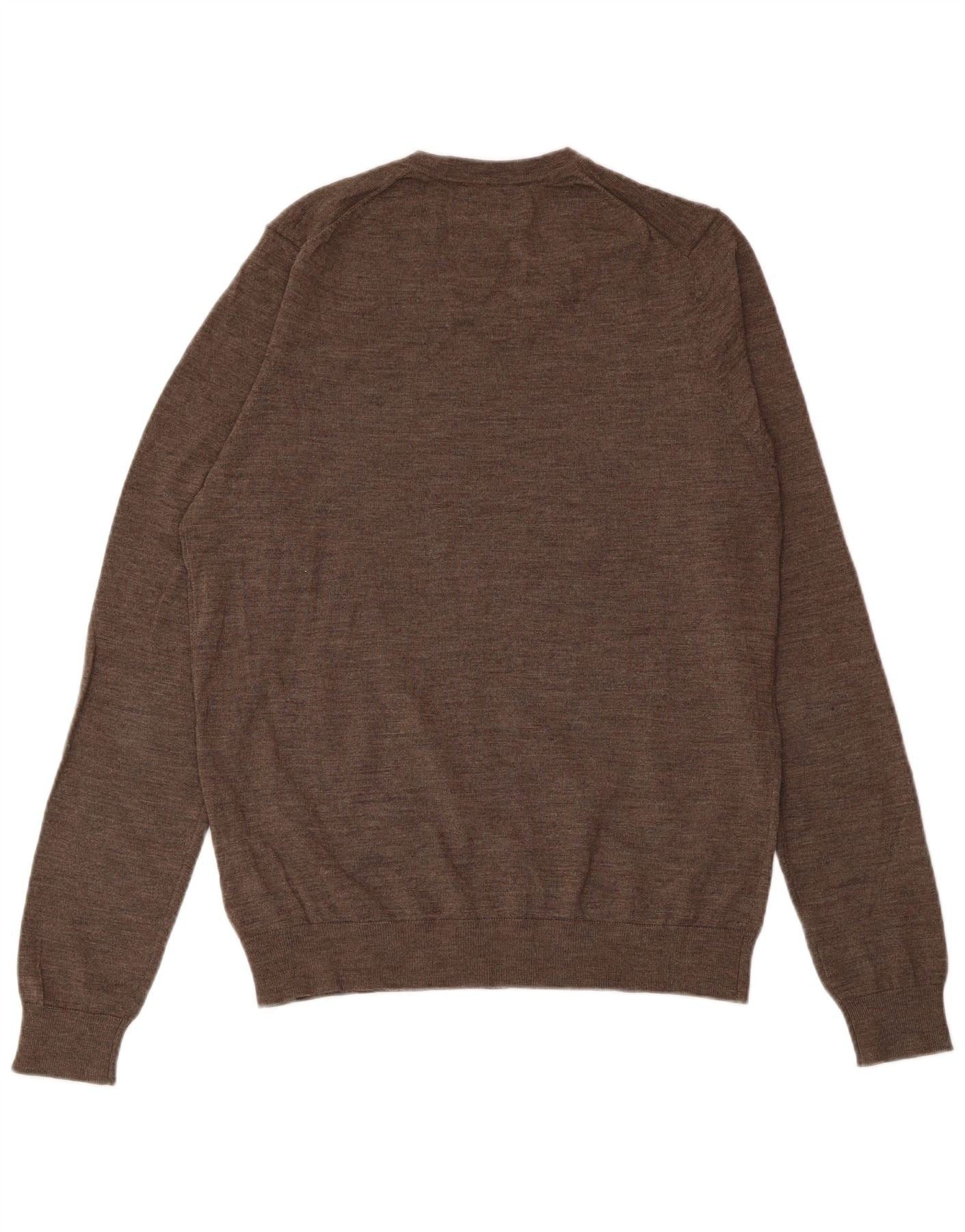 Suéter masculino MARKS & SPENCER com decote em V, lã merino marrom médio