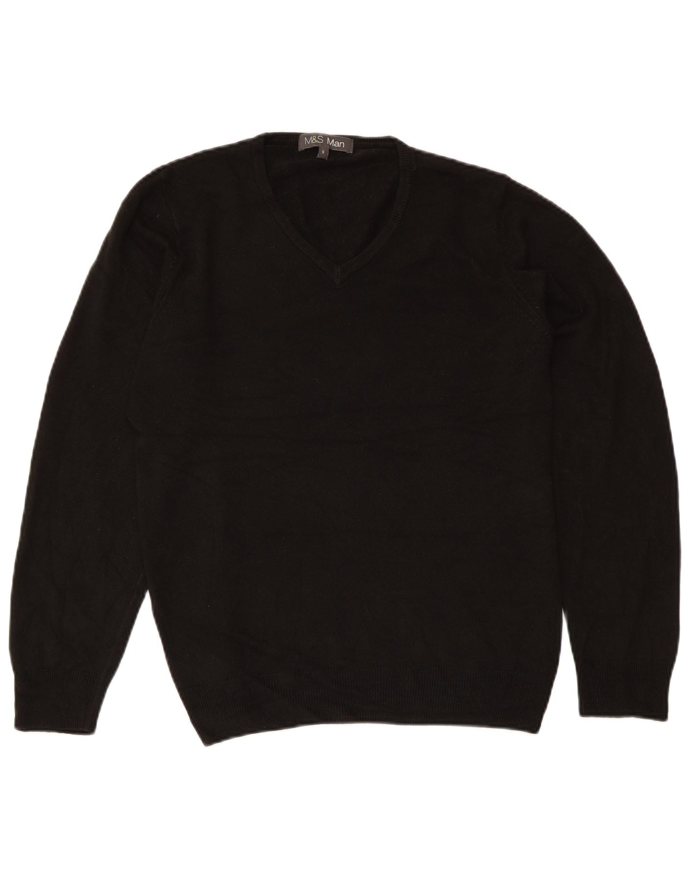 MARKS & SPENCER Suéter masculino com decote em V pequeno acrílico preto