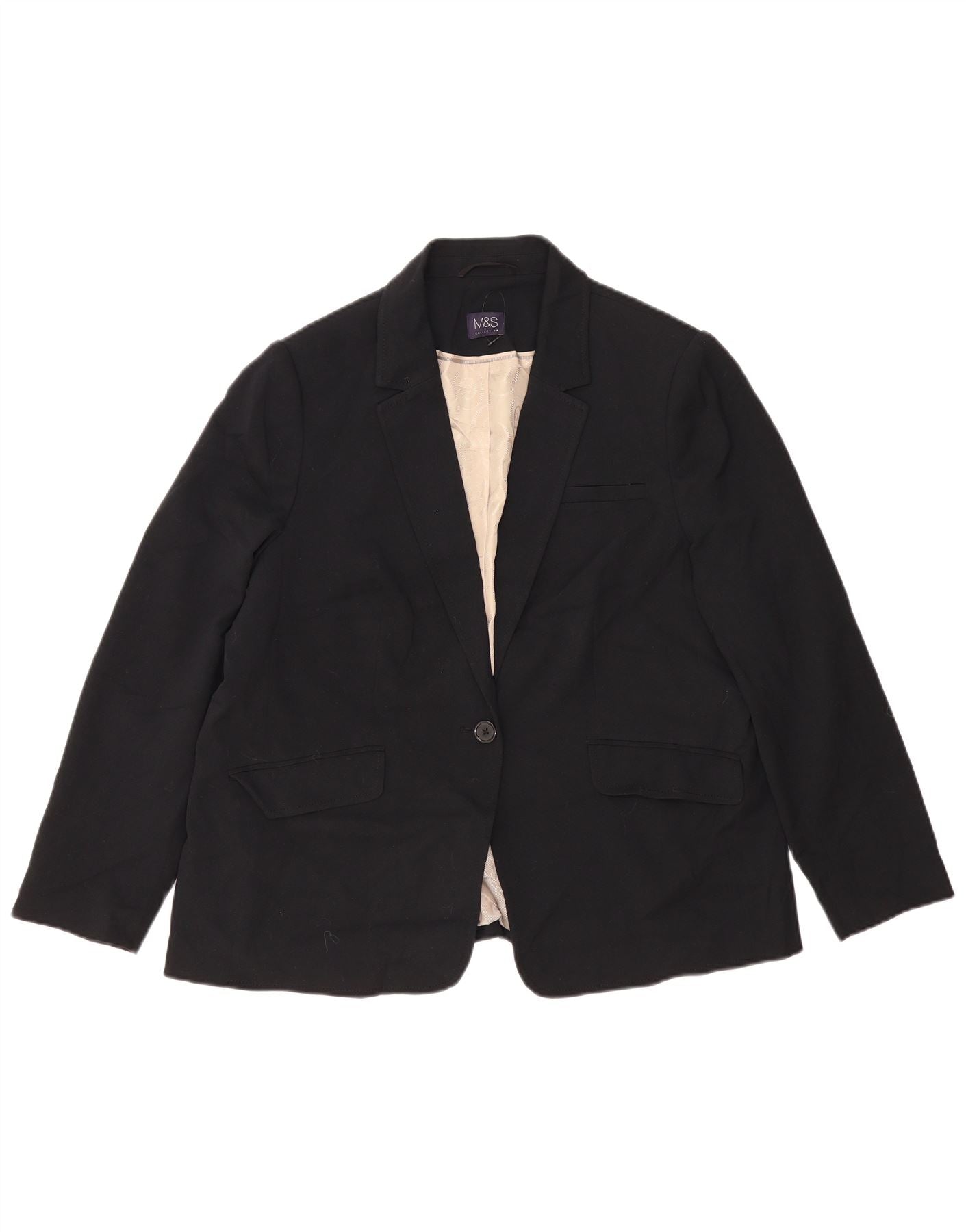 MARKS & SPENCER Womens 1 Button Blazer Jacket UK 20 XL Black Polyester